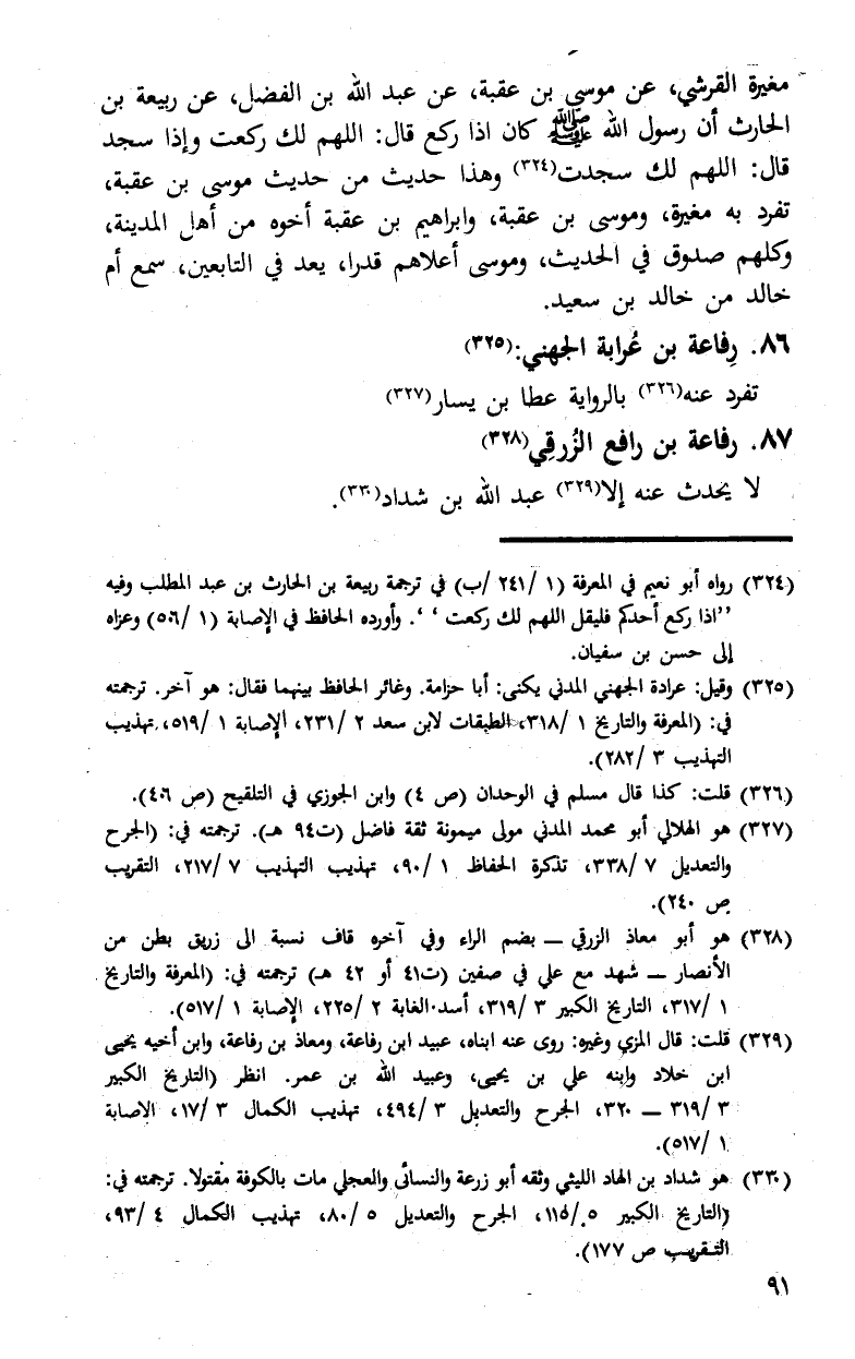 §87 - رِفَاعَةُ بْنُ رَافِعٍ الزُّرَقِيُّ لَا يُحَدِّثُ عَنْهُ إِلَّا عَبْدُ اللَّهِ بْنُ شَدَّادٍ