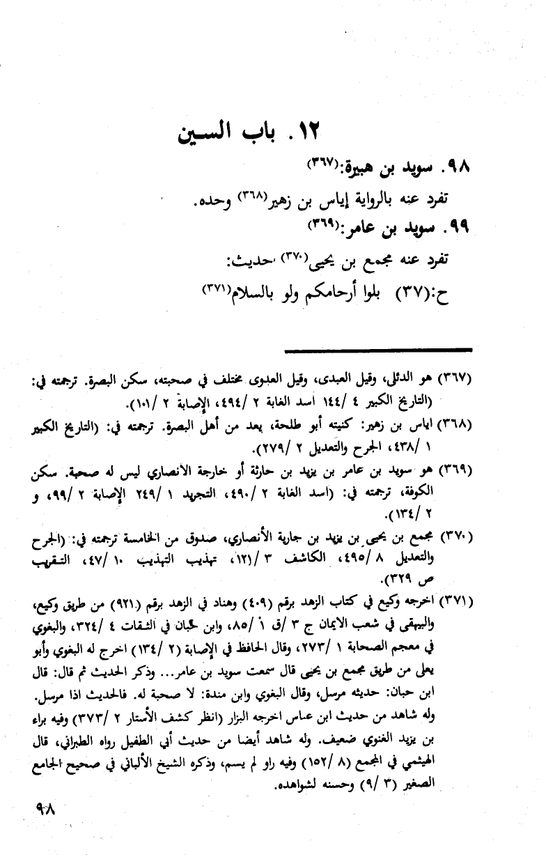 §98 - سُوَيْدُ بْنُ هُبَيْرَةَ تَفَرَّدَ عَنْهُ بِالرِّوَايَةِ إِيَاسُ بْنُ زُهَيْرٍ وَحْدَهُ