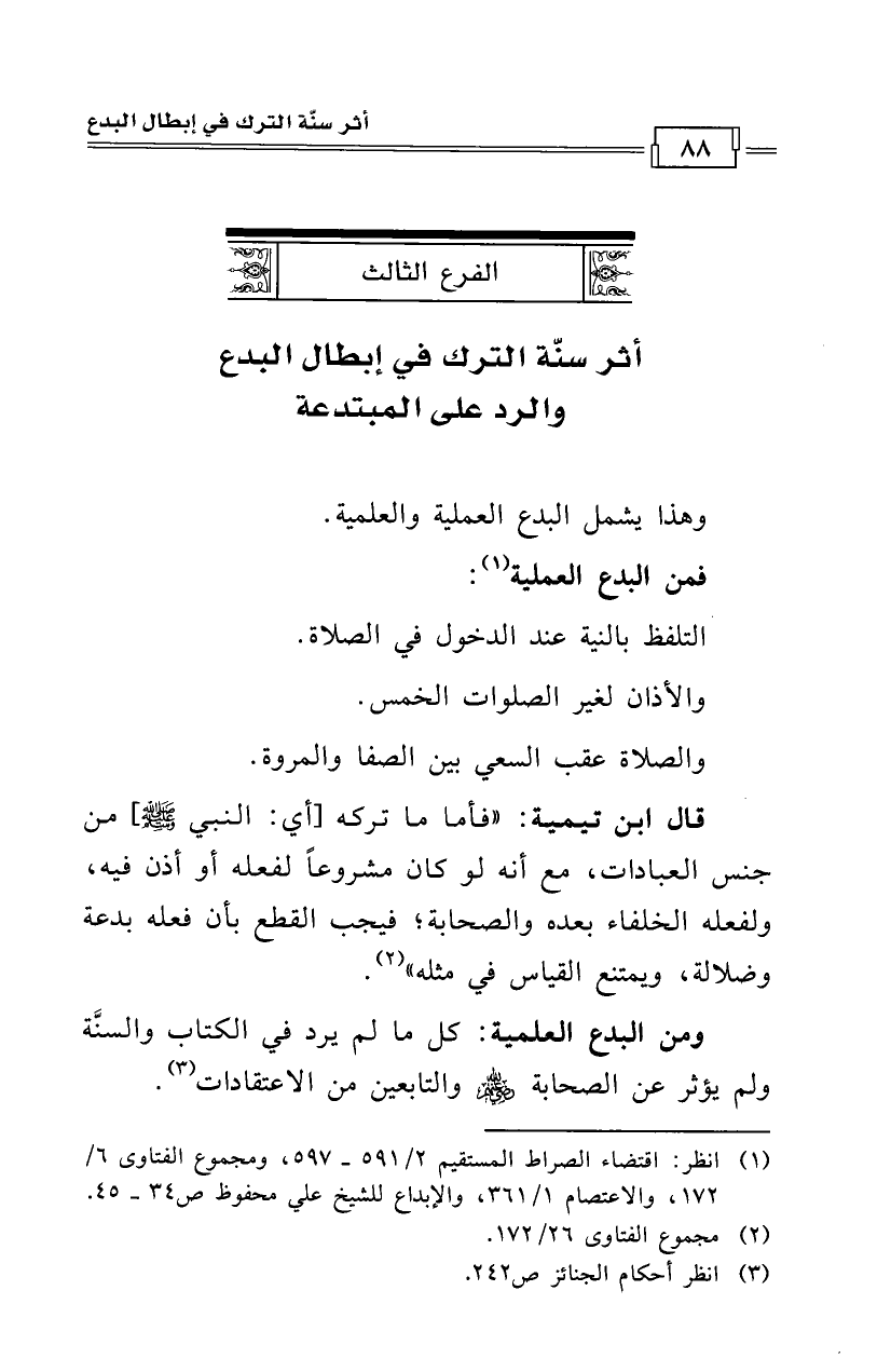 (¬1) انظر: اقتضاء الصراط المستقيم (2/ 591 - 597) ومجموع الفتاوى (6/ 172) والاعتصام (1/ 361) والإبداع للشيخ علي محفوظ ص (34/ 45).