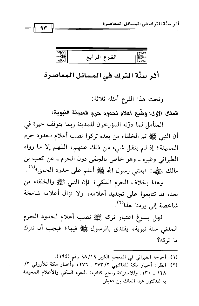المثال الأول: وضْع أعلام لحدود حرم المدينة النبوية: