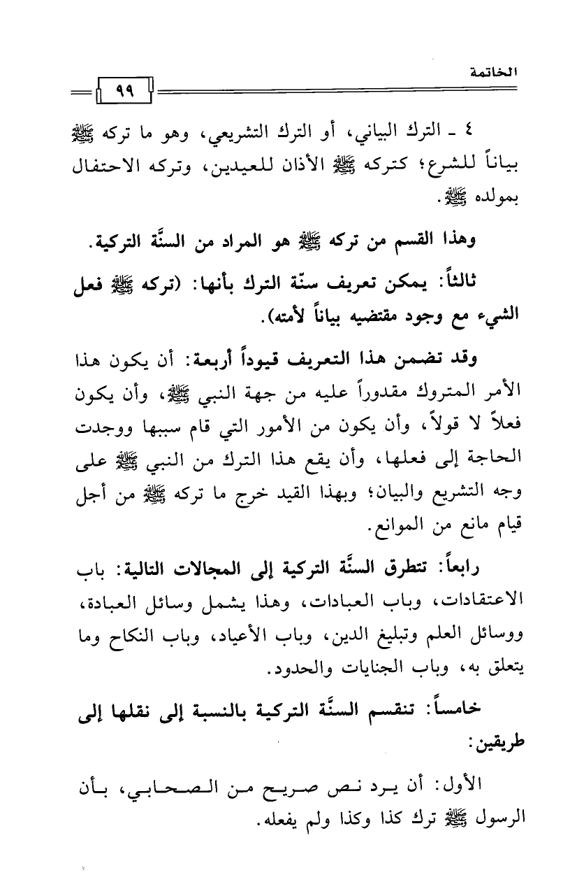 وهذا القسم من تركه - صلى الله عليه وسلم - هو المراد من السُّنَّة التَّركية.