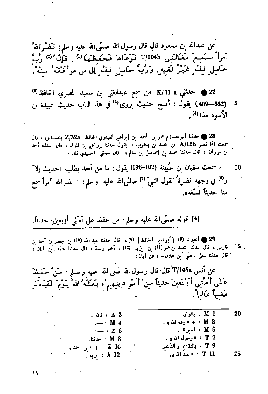 حَدَّثَنَا أَبُو حَازِمٍ عُمَرُ بْنُ أَحْمَدَ بْنِ إِبْرَاهِيمَ الْعَبْدَوِيُّ الْحَافِظُ بِنَيْسَابُورَ قَالَ: سَمِعْتُ نَصْرَ بْنَ مُحَمَّدِ بْنِ يَعْقُوبَ، يَقُولُ: حَدَّثَنَا إِبْرَاهِيمُ بْنُ الْمُوَلَّدِ، قَالَ: حَدَّثَنَا أَحْمَدُ بْنُ مَرْوَانَ، قَالَ: حَدَّثَنَا مُحَمَّدُ بْنُ إِسْمَاعِيلَ بْنِ سَالِمٍ، قَالَ: حَدَّثَنِي الْحُمَيْدِيُّ، قَالَ: سَمِعْتُ سُفْيَانَ بْنَ عُيَيْنَةَ يَقُولُ: مَا مِنْ أَحَدٍ يَطْلُبُ الْحَدِيثَ إِلَّا وَفِي وَجْهِهِ نَضْرَةٌ؛ لِقَوْلِ النَّبِيِّ صَلَّى اللهُ عَلَيْهِ وَسَلَّمَ: §«نَضَّرَ اللَّهُ امْرَأً سَمِعَ مِنَّا حَدِيثًا فَبَلَّغَهُ»
