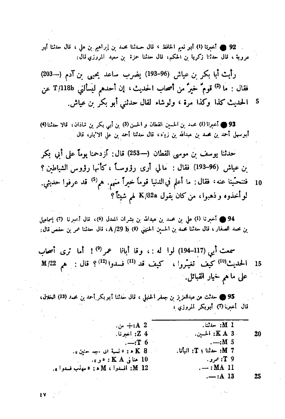 أَخْبَرَنَا أَبُو نُعَيْمٍ الْحَافِظُ، قَالَ: حَدَّثَنَا مُحَمَّدُ بْنُ إِبْرَاهِيمَ بْنِ عَلِيٍّ، قَالَ: حَدَّثَنَا أَبُو عَرُوبَةَ، قَالَ: حَدَّثَنَا زَكَرِيَّا بْنُ الْحَكَمِ، قَالَ: حَدَّثَنَا حَمْزَةُ بْنُ سَعِيدٍ الْمَرْوَزِيُّ، قَالَ: رَأَيْتُ أَبَا بَكْرِ بْنَ عَيَّاشٍ يَضْرِبُ سَاعِدَ يَحْيَى بْنِ آدَمَ، فَقَالَ: " §مَا قَوْمٌ خَيْرٌ مِنْ أَصْحَابِ الْحَدِيثِ، إِنَّ أَحَدَهُمْ لَيَسْأَلُنِي عَنِ الْحَدِيثِ كَذَا وَكَذَا مَرَّةً، وَلَوْ شَاءَ لَقَالَ: حَدَّثَنِي أَبُو بَكْرِ بْنُ عَيَّاشٍ "