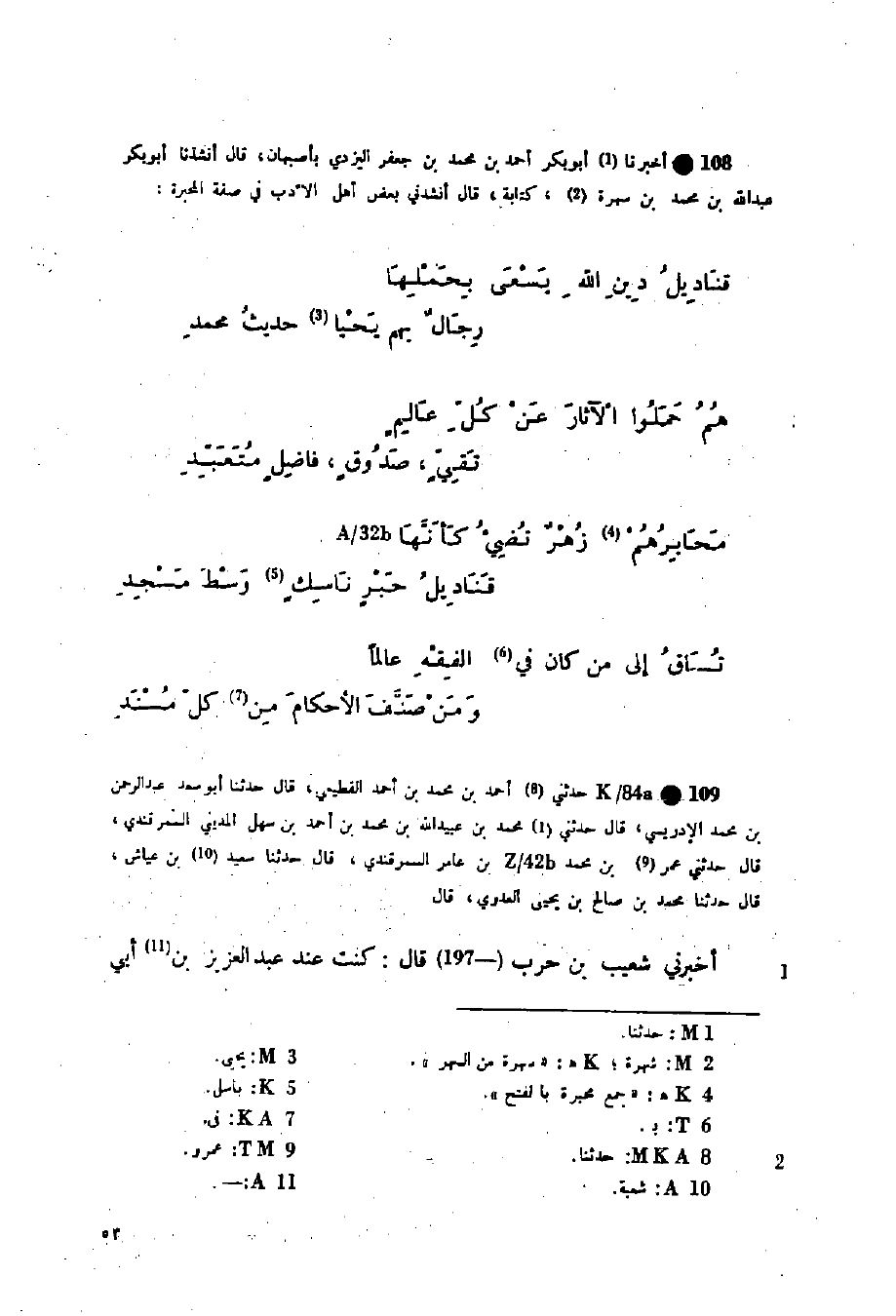 تُسَاقُ إِلَى مَنْ كَانَ فِي الْفِقْهِ عَالِمًا ... وَمَنْ صَنَّفَ الْأَحْكَامَ مِنْ كُلِّ مُسْنَدِ»