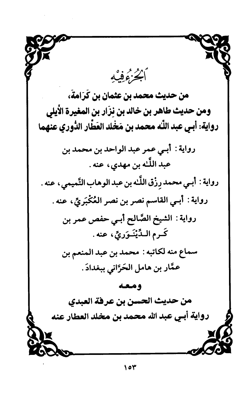 سماع منه لكاتبه محمد بن عبد المنعم بن عمار بن هامل الحراني ببغداد
