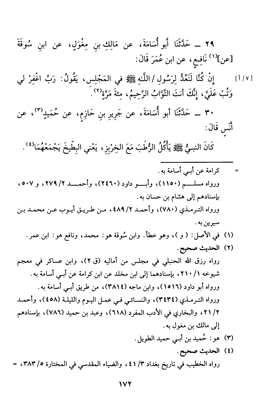 29 - حَدَّثَنَا أَبُو أُسَامَةَ عَنْ مَالِكِ بْنِ مِغْوَلٍ عَنِ ابْنِ سُوقَةَ [عَنْ] نَافِعٍ عَنِ ابْنِ عُمَرَ قَالَ إِنْ كُنَّا لَنَعُدُّ لِرَسُولِ اللَّهِ صَلَّى اللَّهُ عَلَيْهِ وَسَلَّمَ فِي الْمَجْلِسِ يَقُولُ رَبِّ اغْفِرْ لِي وَتُبْ عَلَيَّ إِنَّكَ أَنْتَ التواب الرحيم مئة مرة.