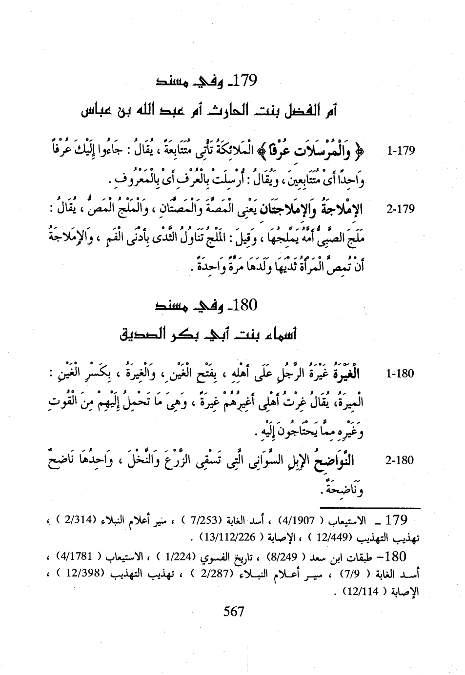 180 - وَفِي مُسْند أَسمَاء بنت أبي بكر الصّديق