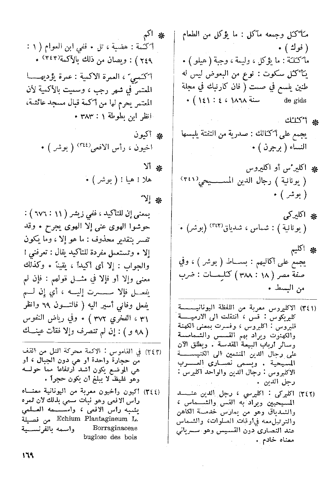 • اكليم: يجمع على أكاليهم: بساط (بوشر)، وفي صفة مصر (18: 388) كَلِمات: ضرب من البسط.