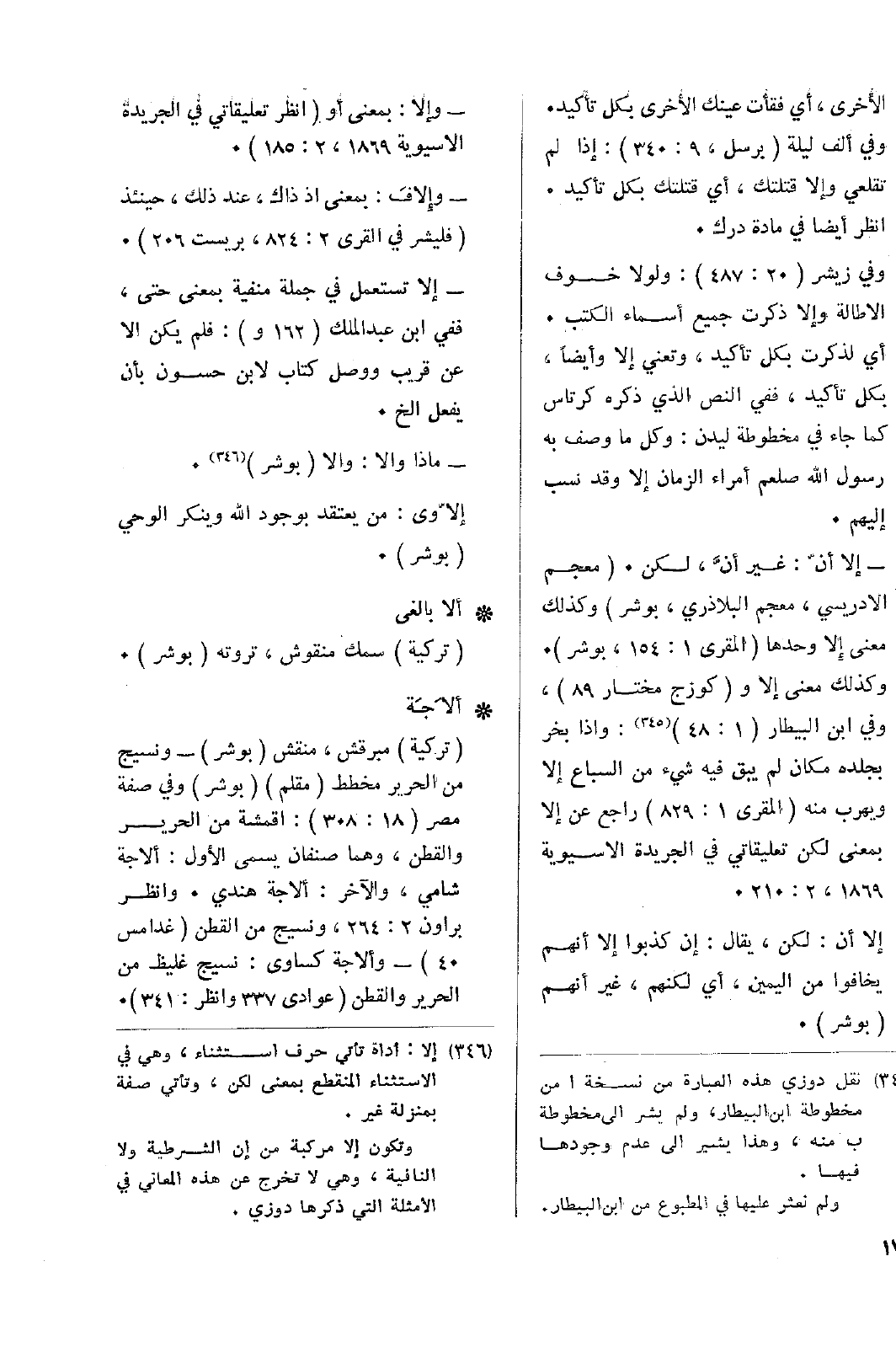 وفي زيشر (20: 487): ولولا خوف الإطالة وإلا ذكرت جميع أسماء الكتب. أي لذكرت بكل تأكيد، وتعني إلا وأيضاً، بكل تأكيد، ففي النص الذي ذكره كرتاس كما جاء في مخطوطة ليدن: وكل ما وصف به رسول الله - صلى الله عليه وسلم - أمراء الزمان إلا وقد نسب إليهم.
