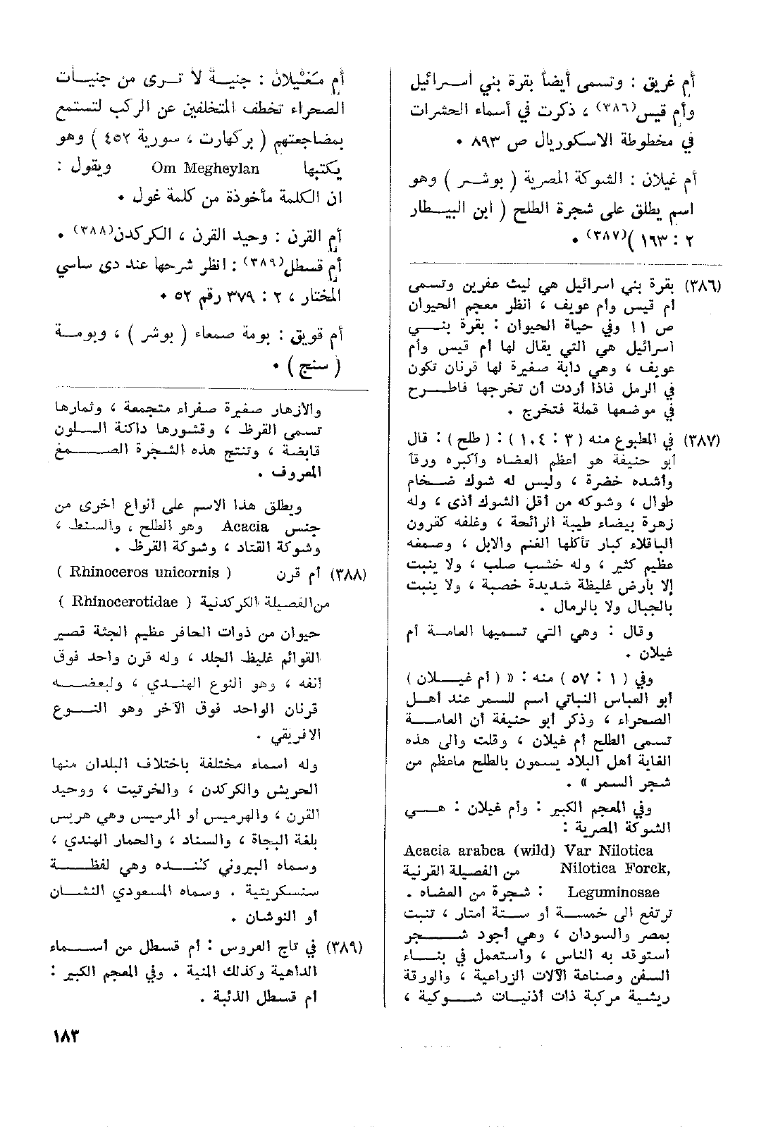 أم غيلان: الشوكة المصرية (بوشر) وهو اسم يطلق على شجرة الطلح (ابن البيطار 2: 163).