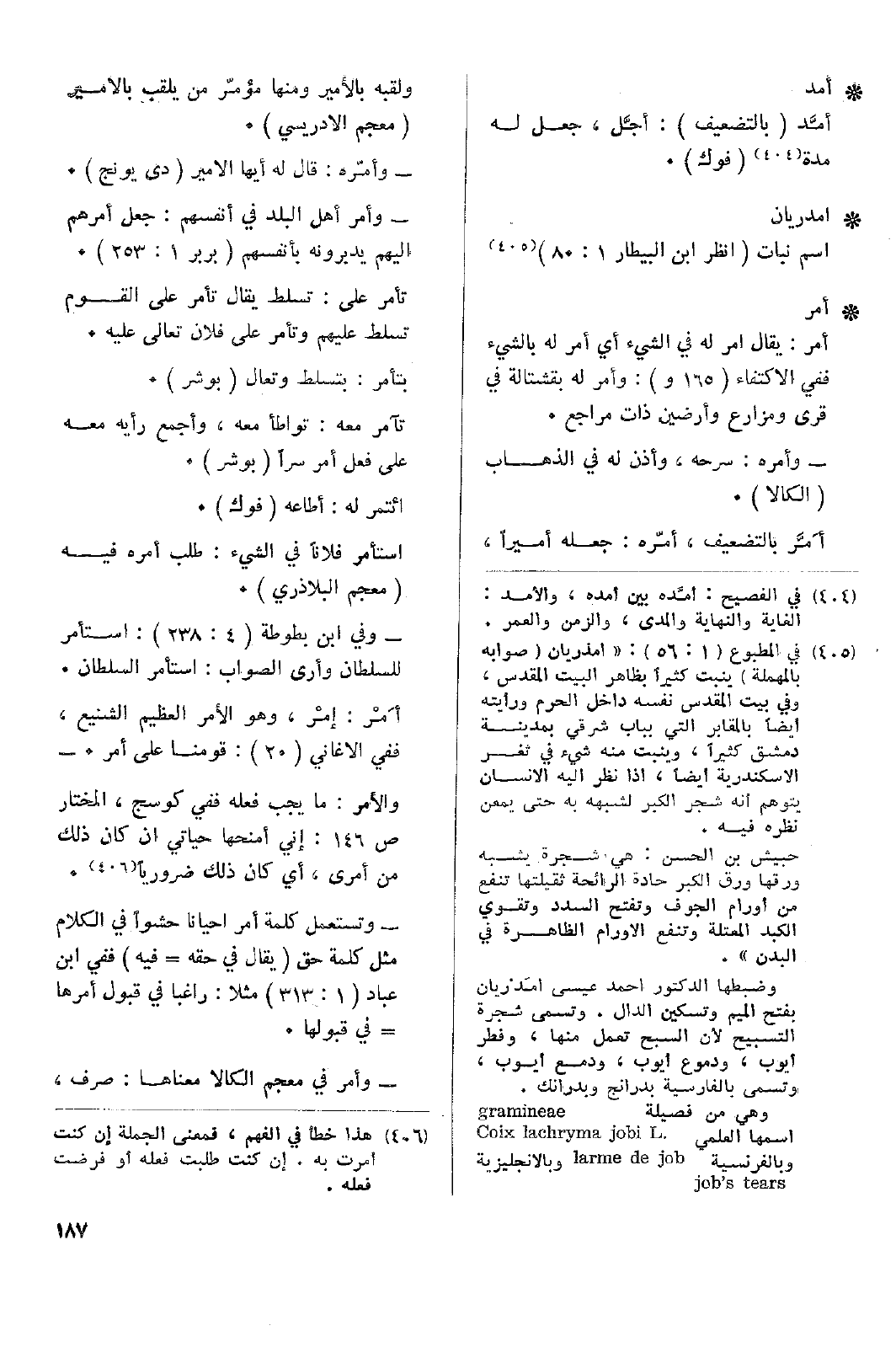 • امدريان: اسم نبات (انظر ابن البيطار 1: 80).