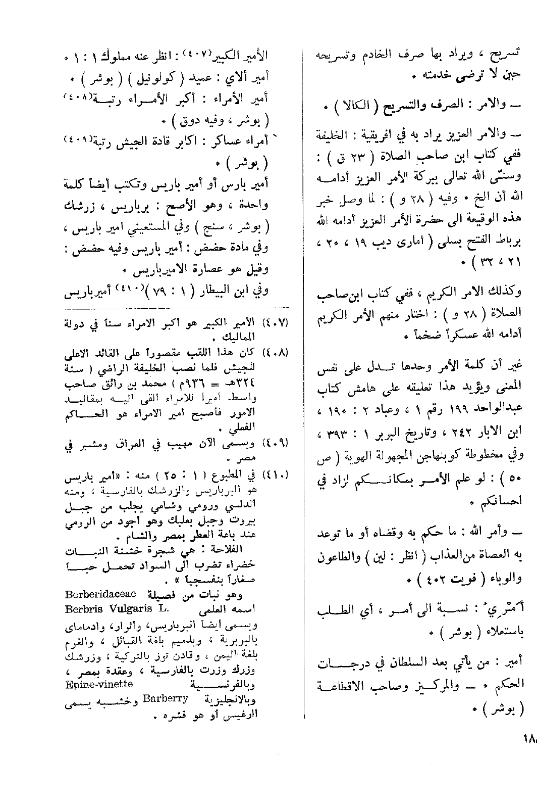 أمير بارس أو أمير باريس وتكتب أيضاً كلمة واحدة، وهو الأصح: برباريس، زرشك (بوشر، سنج) وفي المستعيني أمير باريس، وفي مادة حضض: أمير باريس وفيه حضض: وقيل هو عصارة الاميرباريس.