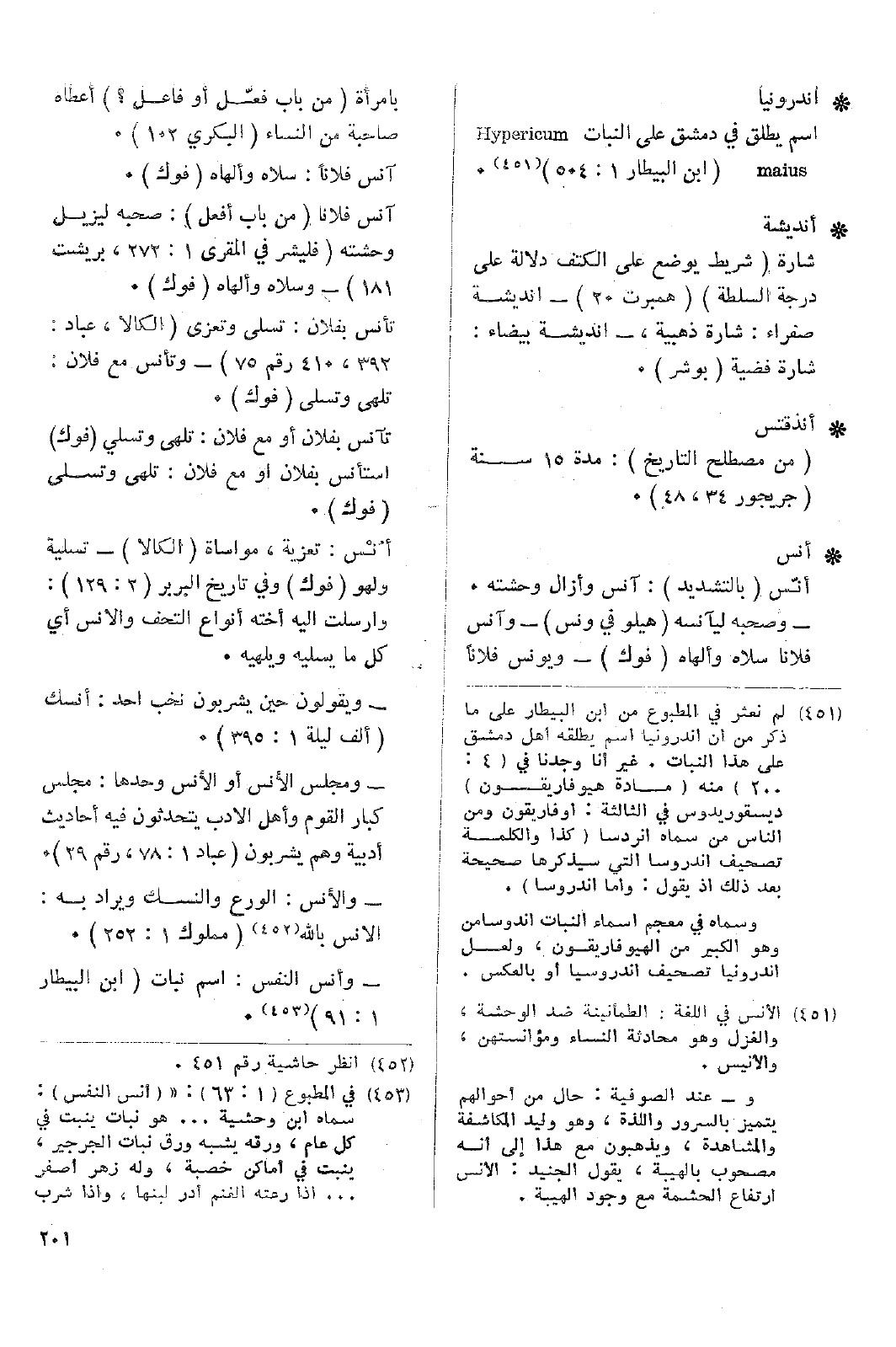 وأنس النفس: اسم نبات (ابن البيطار 1: 91).