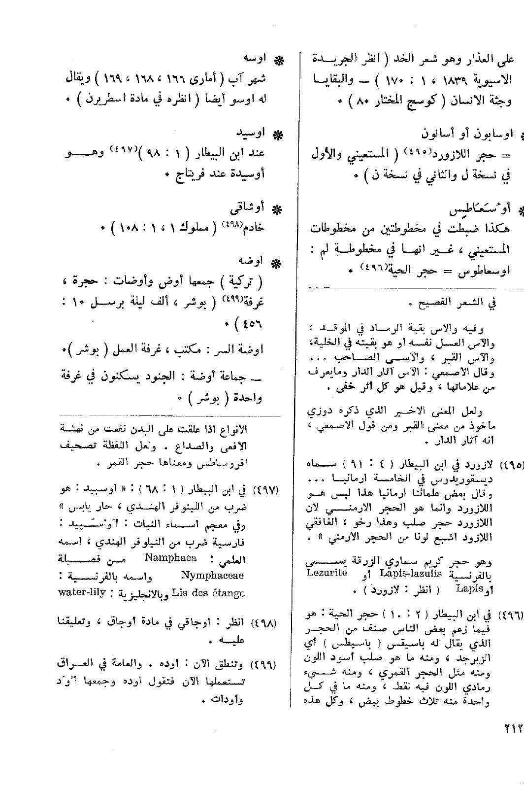 • اوسيد: عند ابن البيطار (1: 98) وهو أوسيدة عند فريتاج.
