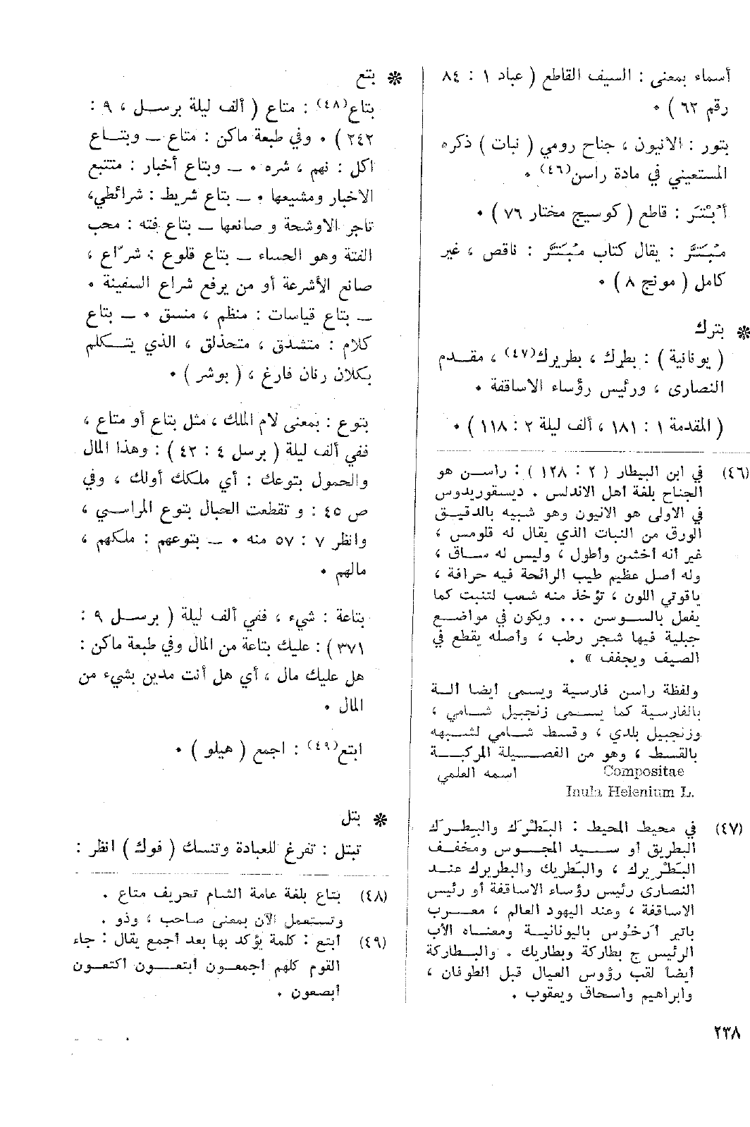 بتور: الانيون، جناح رومي (نبات) ذكره المستعيني في مادة راسن.