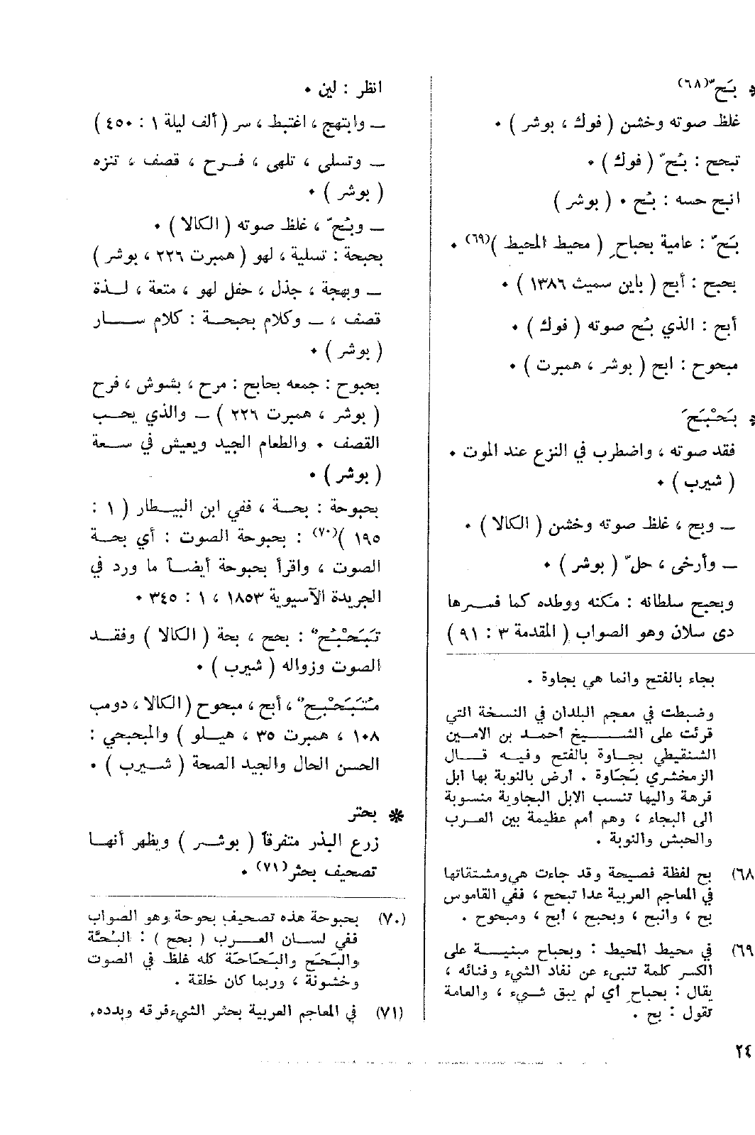 بحبوحة: بحة، ففي ابن البيطار (1: 195): بحبوحة الصوت: أي بحة الصوت، واقرأ بحبوحة أيضاً ما ورد في الجريدة الآسيوية 1853، 1: 345.