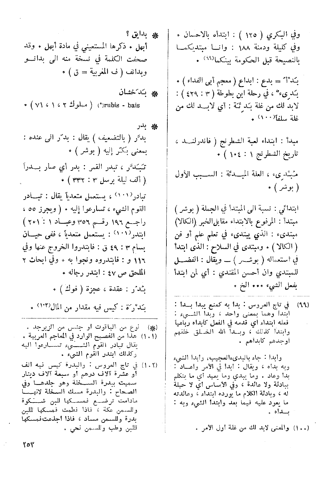 بَدْأُ: بدع: إبداع (معجم أبي الفداء).
