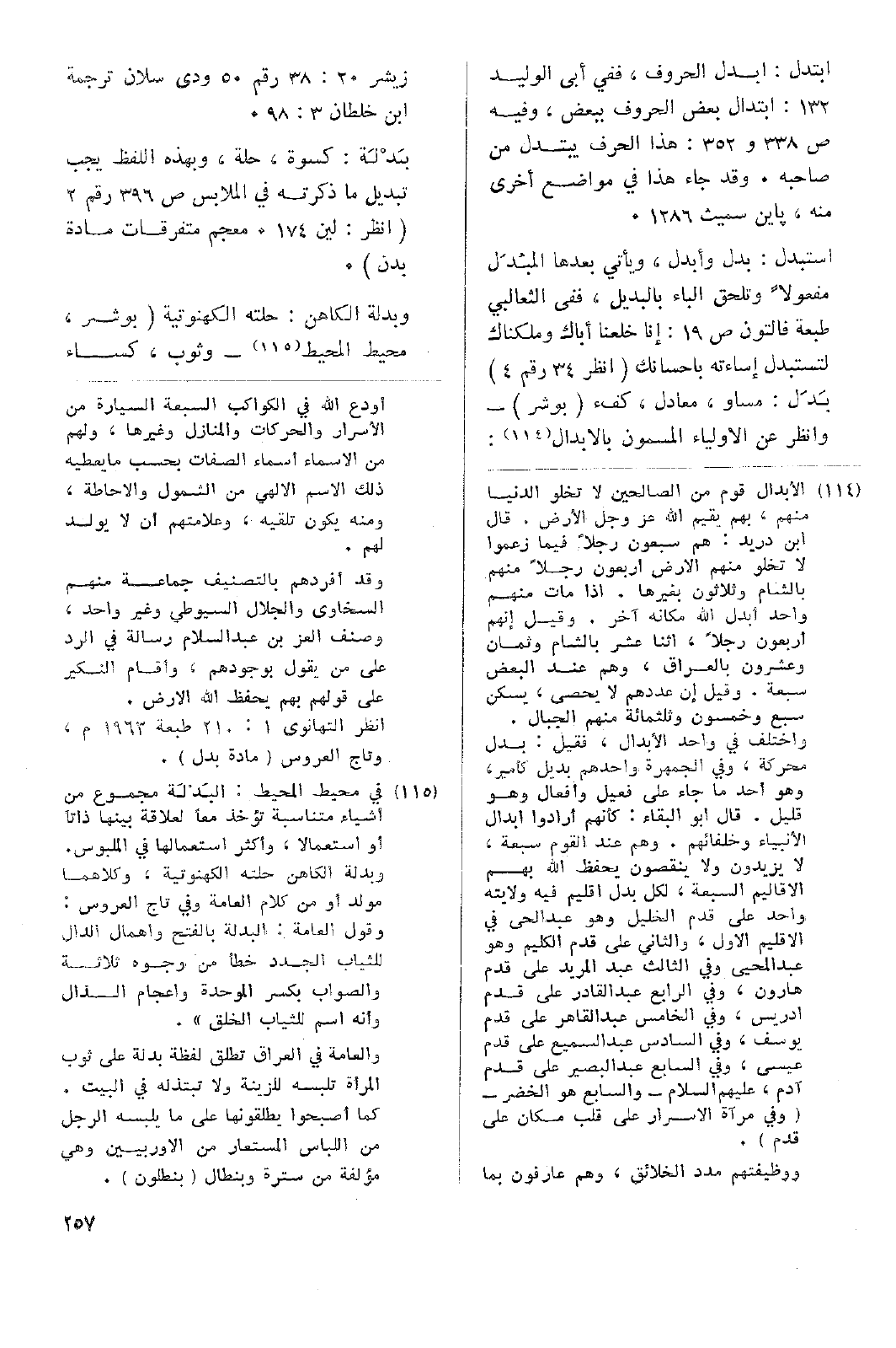 بَدَل: مساو، معادل، كفء (بوشر) - وانظر عن الأولياء المسمون بالابدال: زيشر 20: 38 رقم 50 ودى سلان ترجمة ابن خلطان 3: 98.