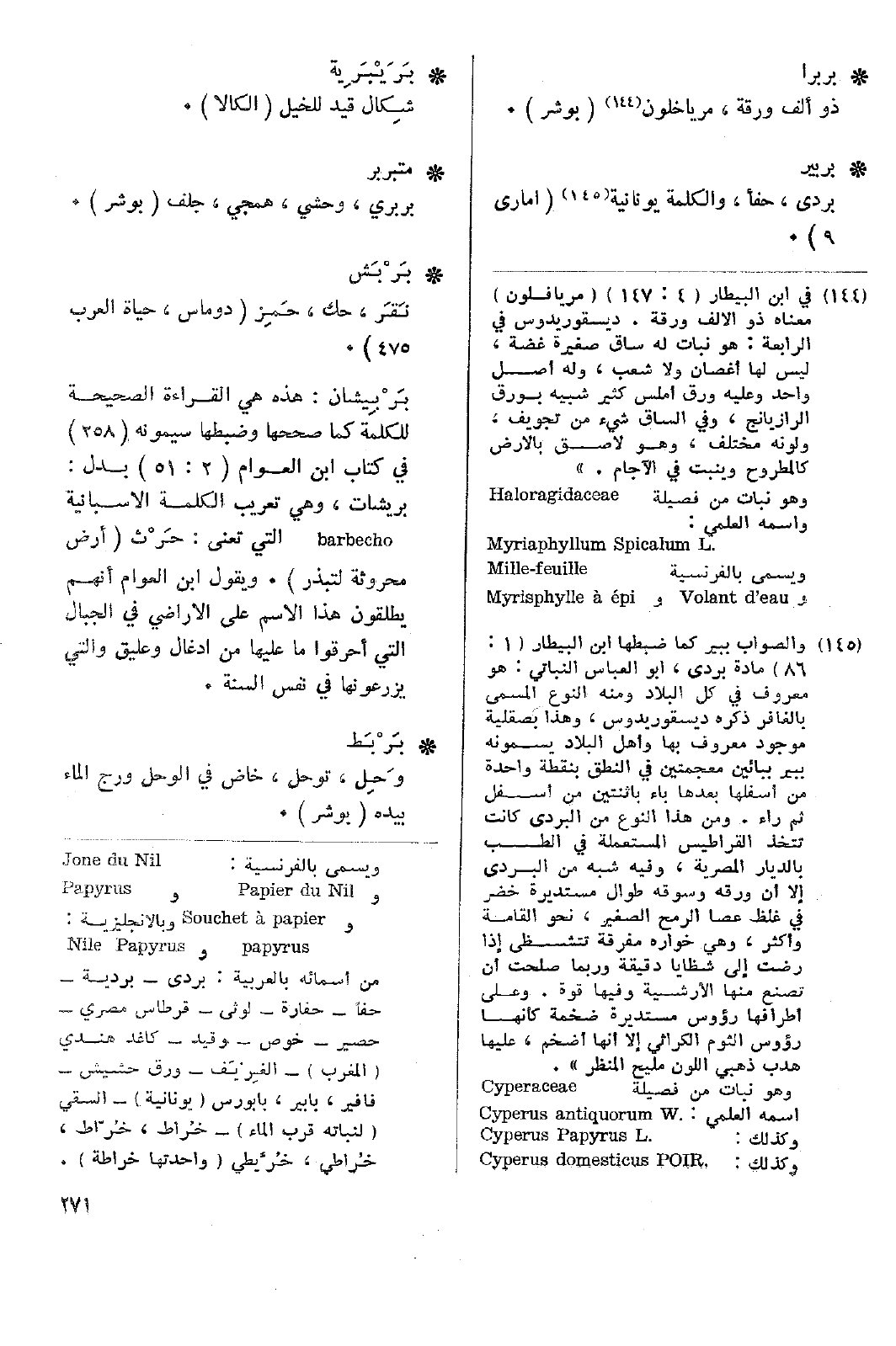 • بربير: بردي، حفأ، والكلمة يونانية (أماري 9).