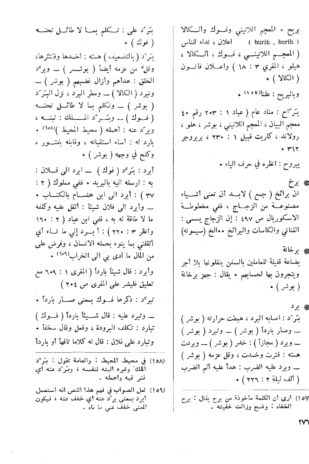 • برخ: إن برائخ (جمع) لابد أن تعني أشياء مصنوعة من الزجاج، ففي مخطوطة الاسكوريال ص497: إن الزجاج يسمى: القناني والكاسات والبرائخ .. الخ (سيمونه).