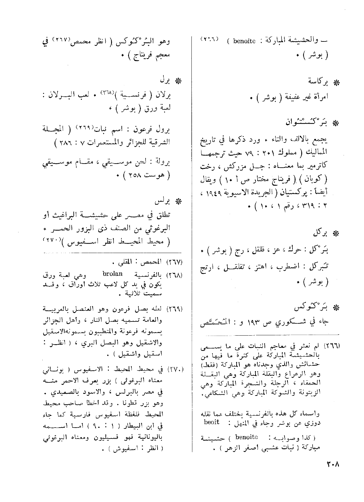 • بَرْكُسْتُوان: يجمع بالألف والتاء. ورد ذكرها في تاريخ المماليك (مملوك 201: 79 حيث ترجمها كاترمير بما معناه: جل مزركش، رخت (كوبان) (فريتاج مختار ص أ 10) ويقال أيضاً: بركستيان (الجريدة الآسيوية 1949، 2: 319، رقم 1، 10).