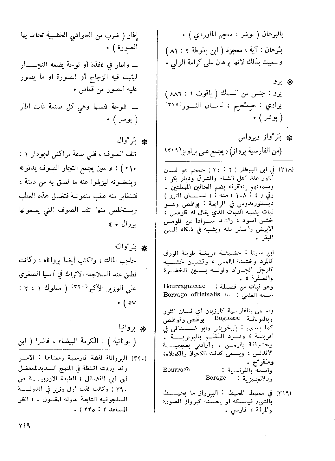 • بَرْوانَه: حاجب الملك. وتكتب أيضاً برواناه، وكانت تطلق عند السلاجقة الأتراك في آسيا الصغرى على الوزير الأكبر (مملوك 1، 2: 57).