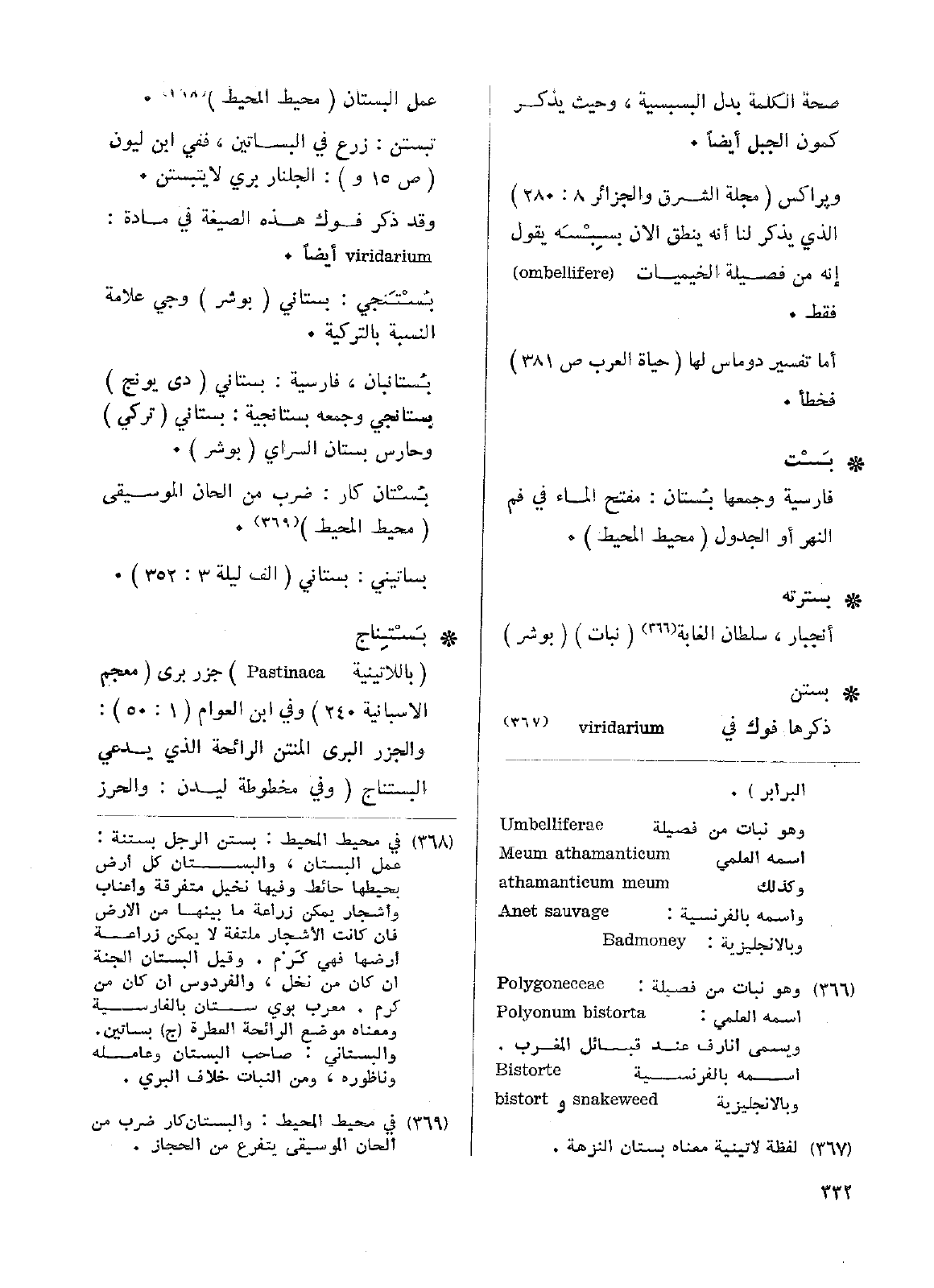 • بَسْتِناج: (باللاتينية Pastinaca) جزر بري (معجم الأسبانية 240) وفي ابن العوام (1: 50): والجزر البري المنتن الرائحة الذي يدعي البستناج (وفي مخطوطة ليدن: والحرز