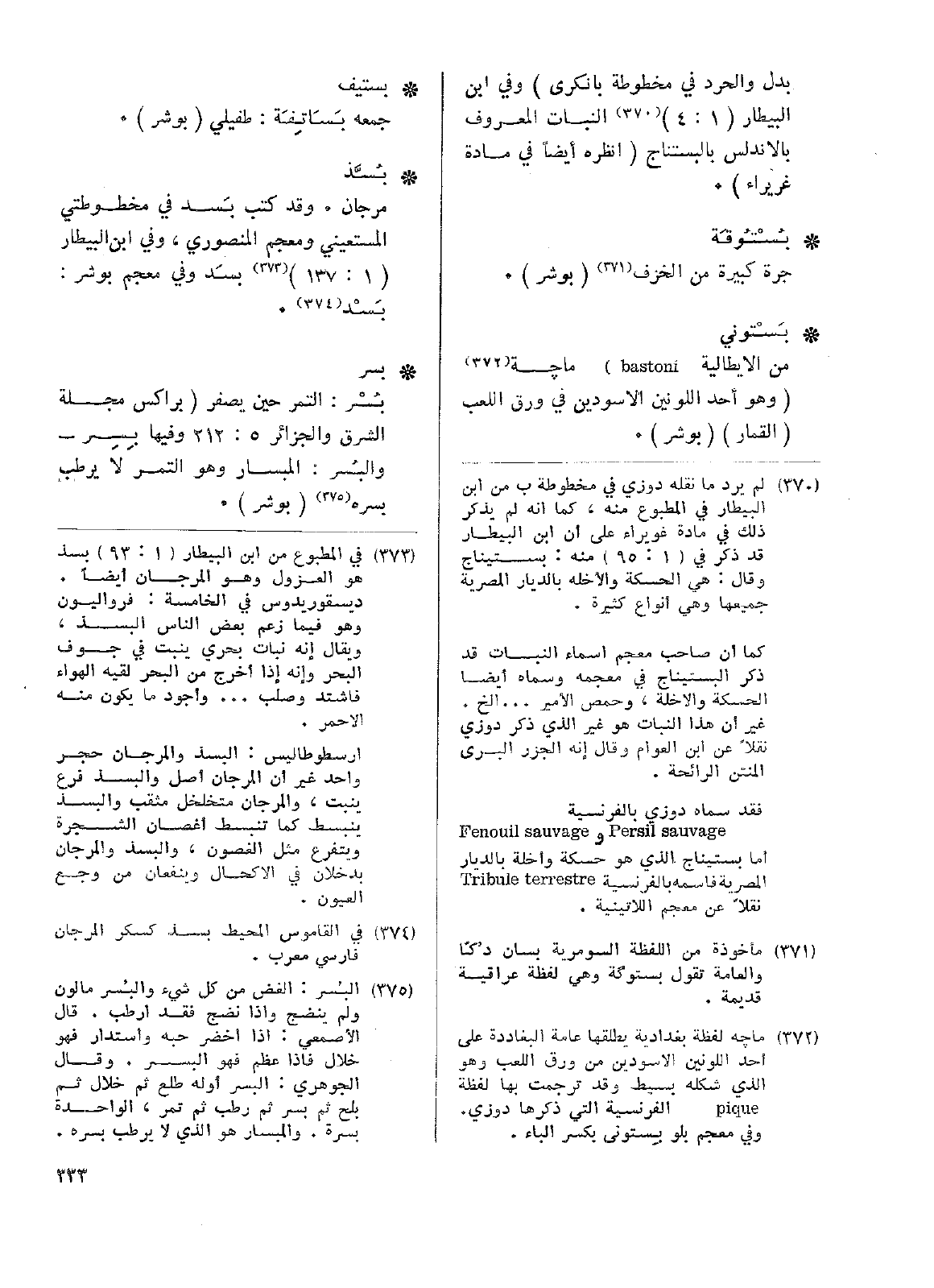بدل والحرد في مخطوطة بانكري) وفي ابن البيطار (1: 4) النبات المعروف بالأندلس بالبستناج (انظره أيضاً في مادة غريراء).