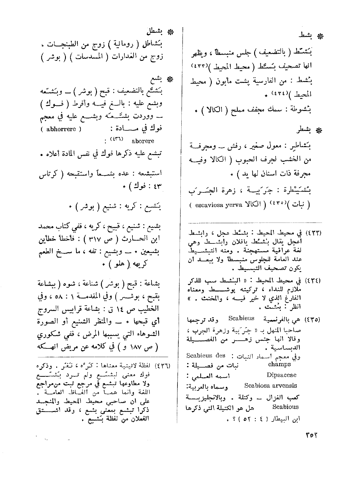 بُشَيْطرة: جَرَبية، زهرة الجَرَب (نبات) (الكالا escaviosa yerva) .