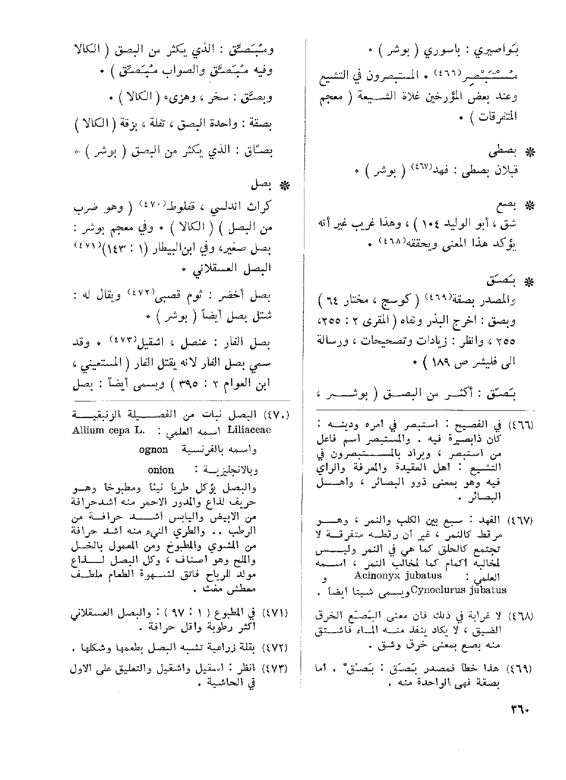 بصل الفار: عنصل، اشقيل. وقد سمي بصل الفار لأنه يقتل الفار (المستعيني، ابن العوام 2: 395) ويسمى أيضاً: بصل الخنزير، ففي المستعيني (انظر اشقيل): ويسمى بصل الفار لأنه يقتل الفار وهو بصل الخنزير. وفي معجم المنصوري: بصل الفار هو العنصل وهو أيضاً بصل