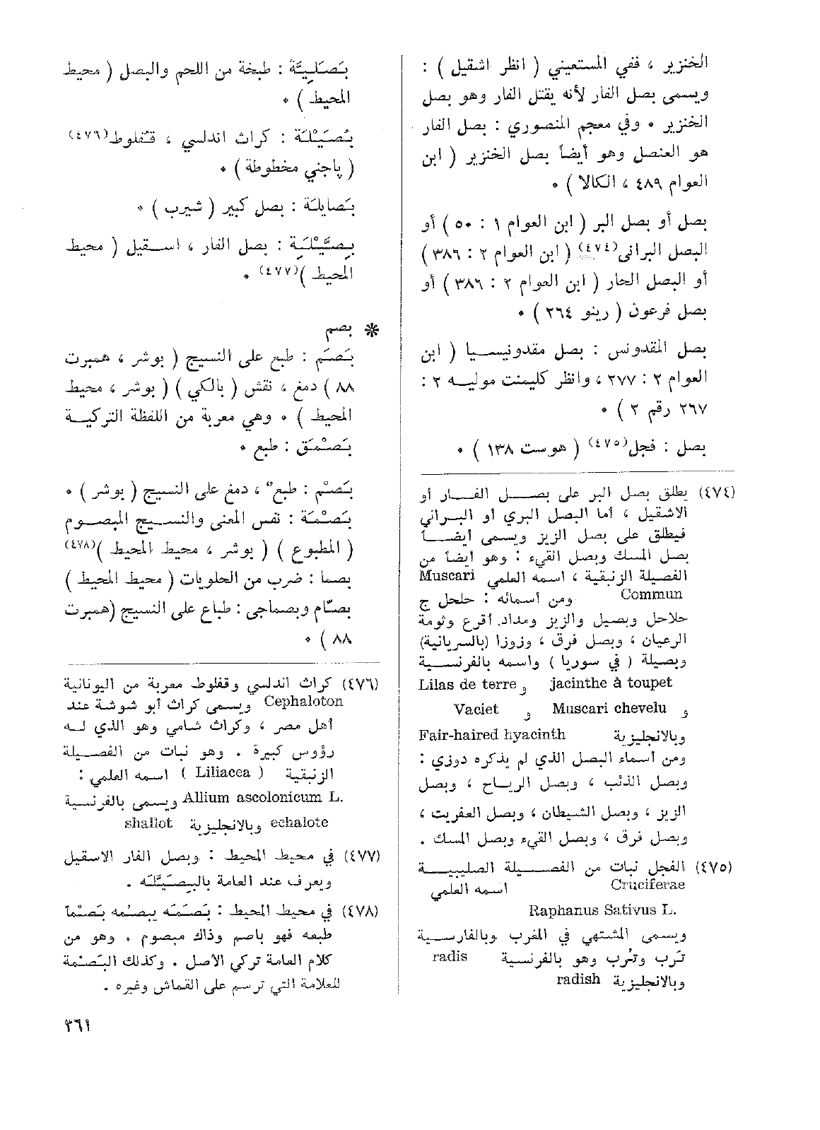 بصل المقدونس: بصل مقدونيسيا (ابن العوام 2: 277، وانظر كليمنت موليه 2: 267 رقم 2).