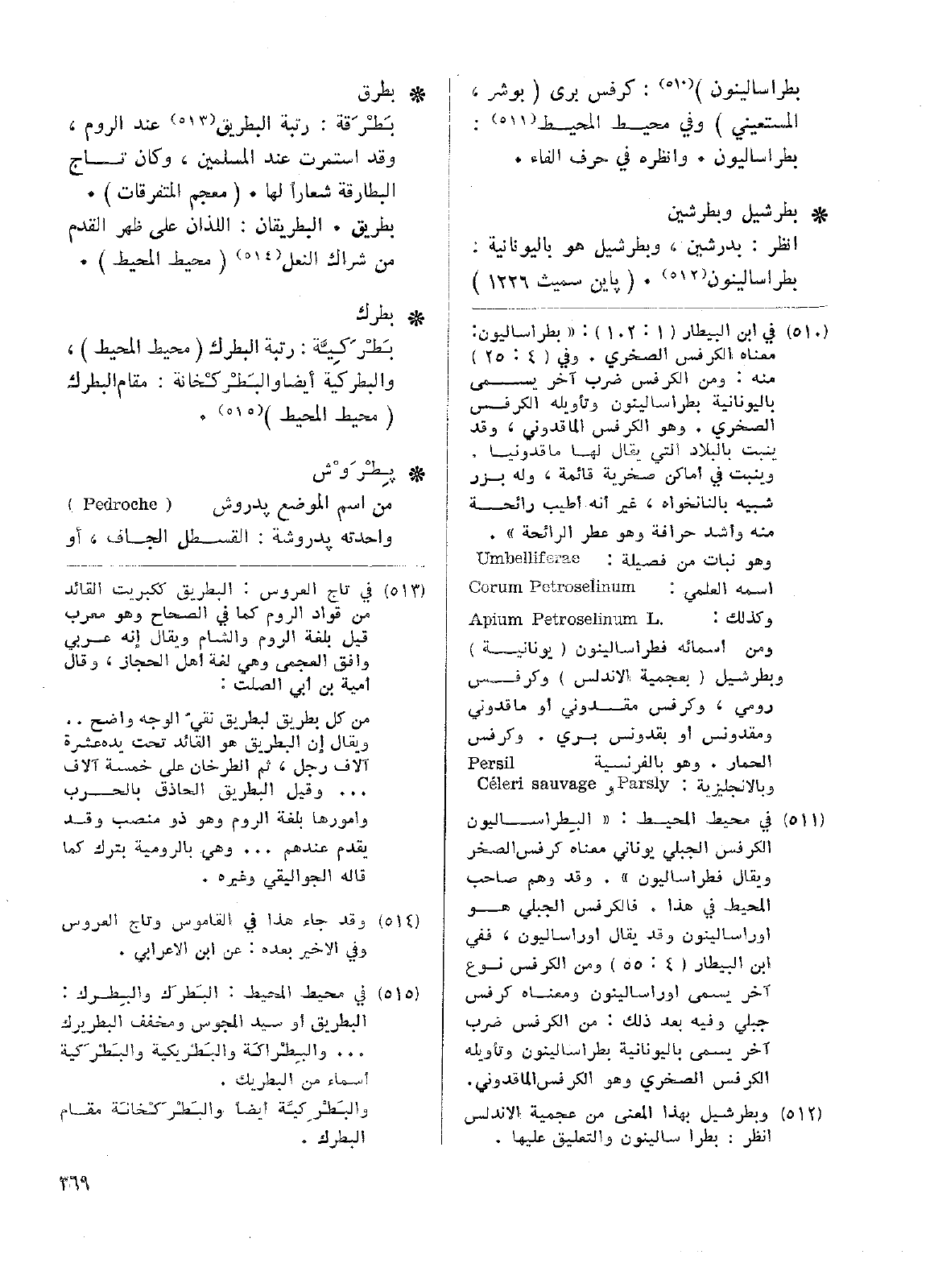 • بطرشيل وبطرشين: انظر: بدرشين، وبطرشيل هو باليونانية: بطراسالينون. (باين سميث 1226).