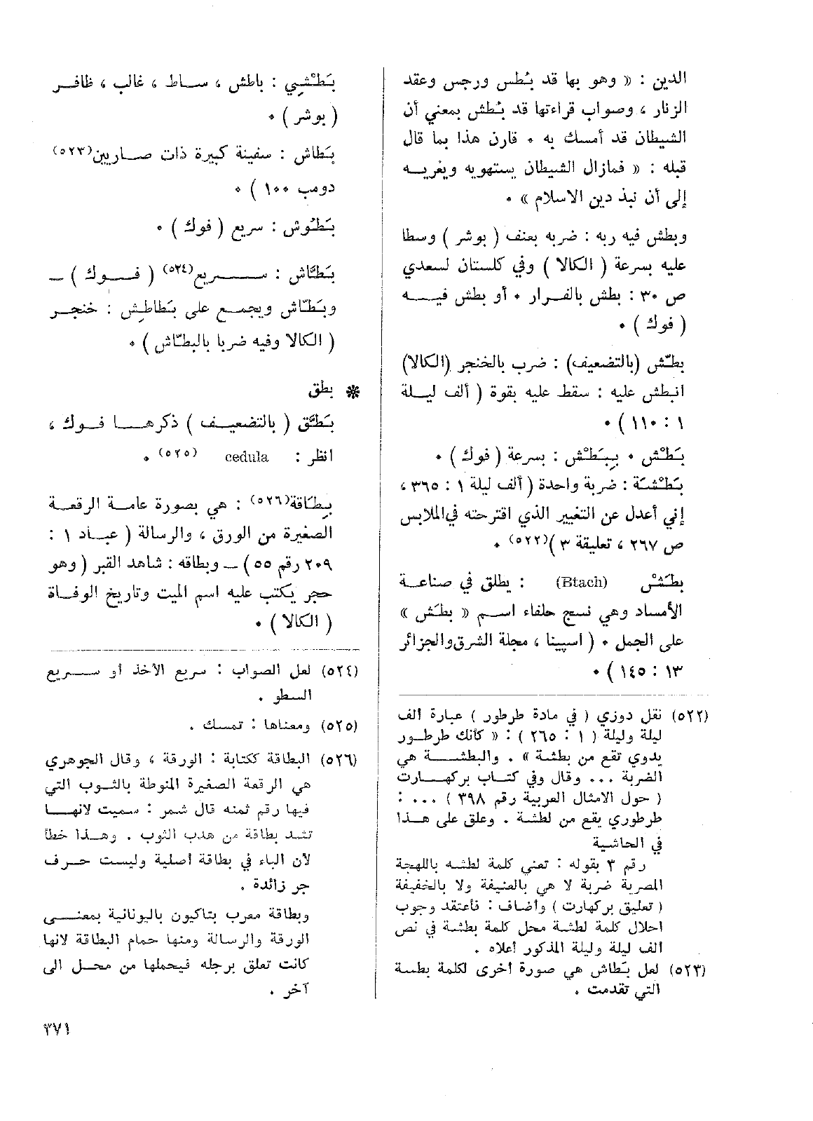 الدين: ((وهو بها قد بُطس ورجس وعقد الزنار، وصواب قراءتها قد بُطش بمعني أن الشيطان قد أمسك به. قارن هذا بما قال قبله: ((فما زال الشيطان يستهويه ويغريه إلى أن نبذ دين الإسلام)).