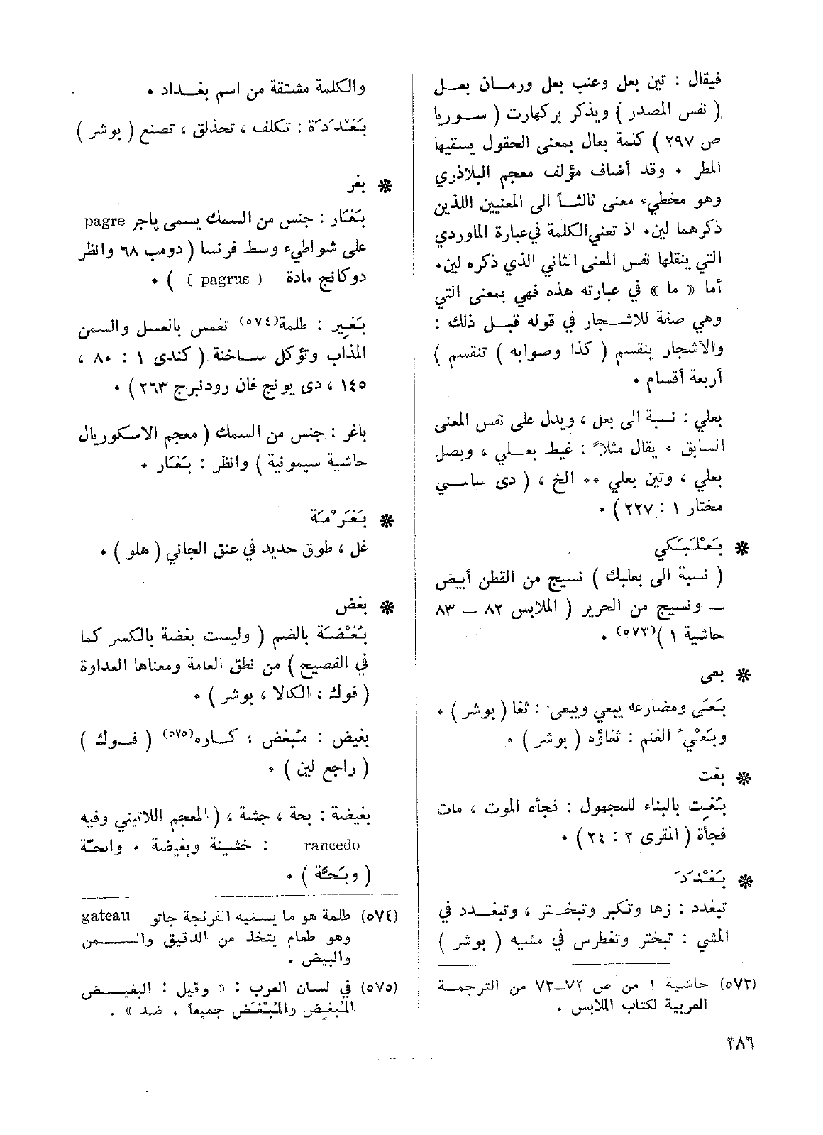 فيقال: تين بعل وعنب بعل ورمان بعل (نفس المصدر) ويذكر بركهارت (سوريا ص297) كلمة بعال بمعنى الحقول يسقيها المطر. وقد أضاف مؤلف معجم البلاذري وهو مخطئ معنى ثالثاً إلى المعنيين اللذين ذكرهما لين. إذ تعني الكلمة في عبارة الماوردي التي ينقلها نفس المعنى الثاني الذي ذكره لين. أما ((ما)) في عبارته هذه فهي بمعنى التي وهي صفة للأشجار في قوله قبل ذلك: والأشجار ينقسم (كذا وصوابه) تنقسم) أربعة أقسام.