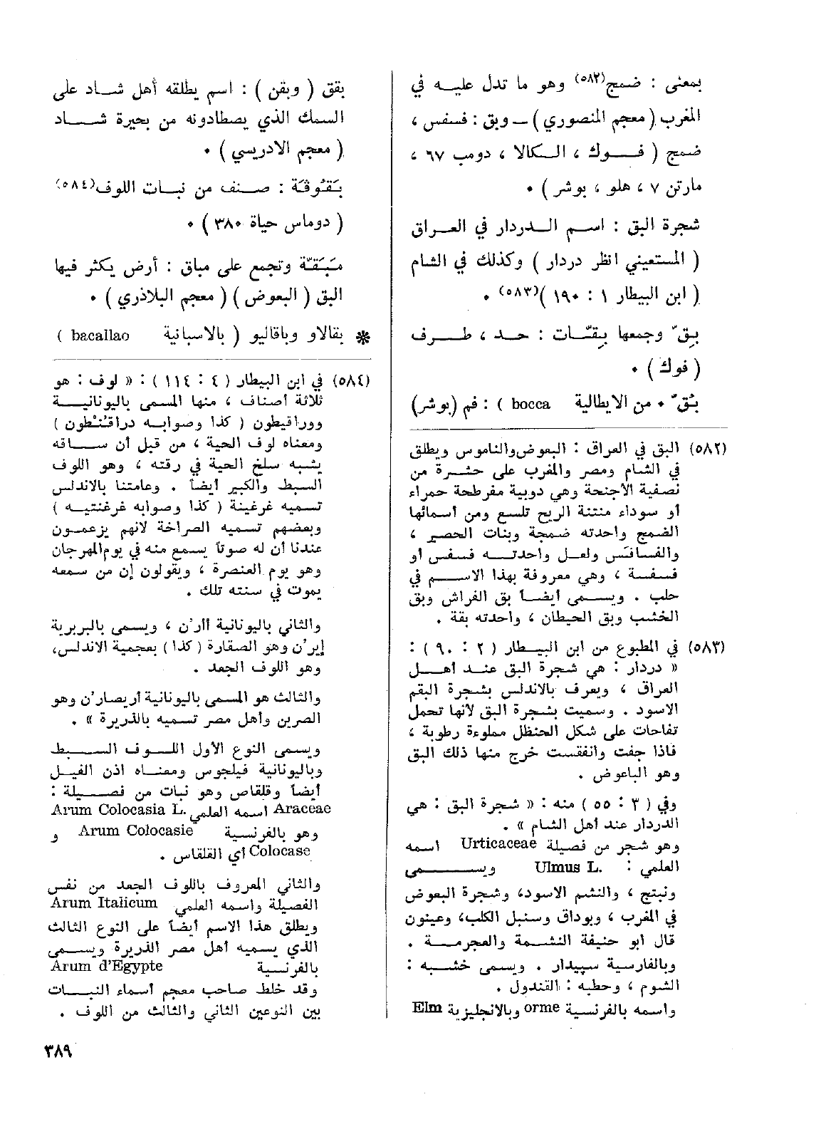 شجرة البق: اسم الدردار في العراق (المستعيني انظر دردار) وكذلك في الشام (ابن البيطار 1: 190).