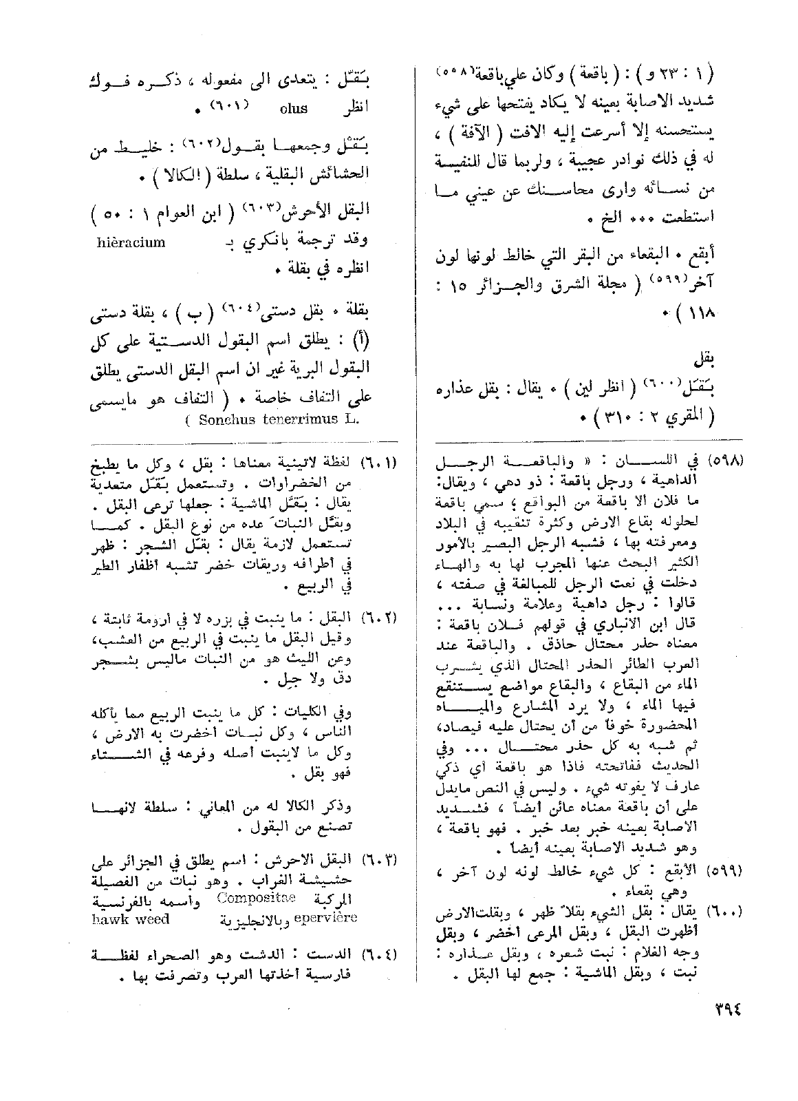 بقلة. بقل دستي (ب)، بقلة دستي (أ): يطلق اسم البقول الدستية على كل البقول البرية غير أن اسم البقل الدستي يطلق على التفاف خاصة. (التفاف هو ما يسمى Sonchus tenerrimus L.)
