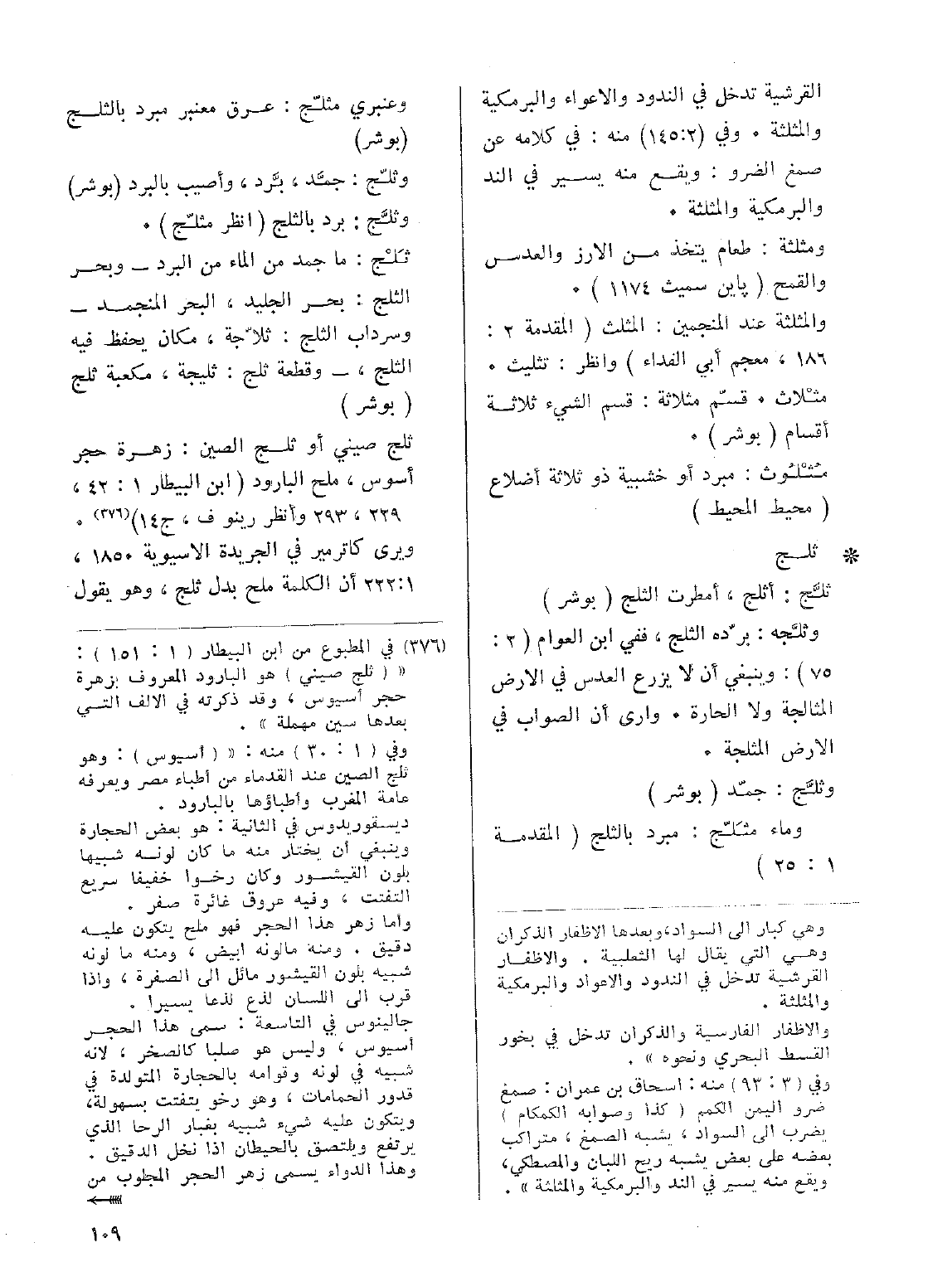 ثلج صيني أو ثلج الصين: زهرة حجر أسوس، ملح البارود (ابن البيطار 1: 42، 229، 293 وأنظر رينوف، ج 14) ويرى كاترمير في الجريدة الآسيوية 1850، 1: 222 أن الكلمة ملح بدل ثلج، وهو يقول