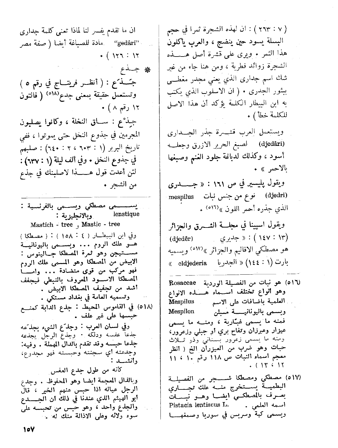 ويقول بليسير في ص161: (جدري ( djedri) نوع من جنس نبات mespilus الذي جذره أحمر اللون).