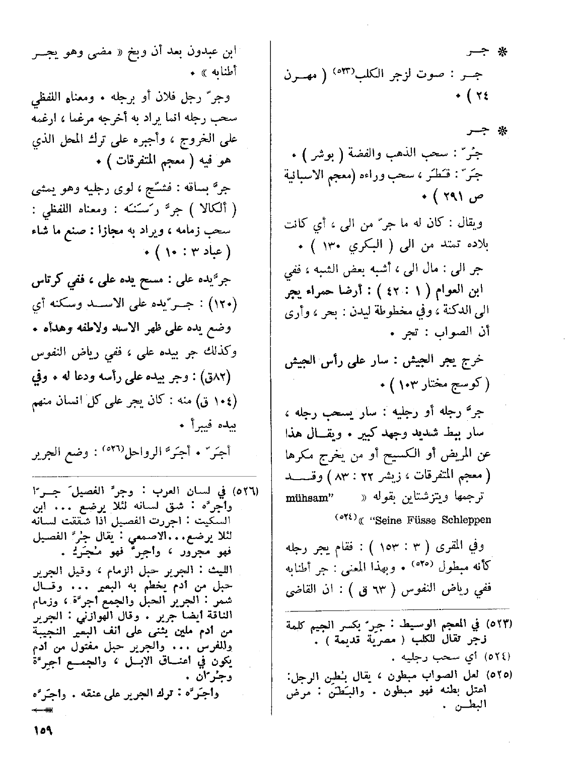 جرَّ بساقه: فشّج، لوى رجليه وهو يمشي (ألكالا) جرَّ سَنَه: ومعناه اللفظي: سحب زمامه، ويراد به مجازا: صنع ما شاء (عباد 3: 10).