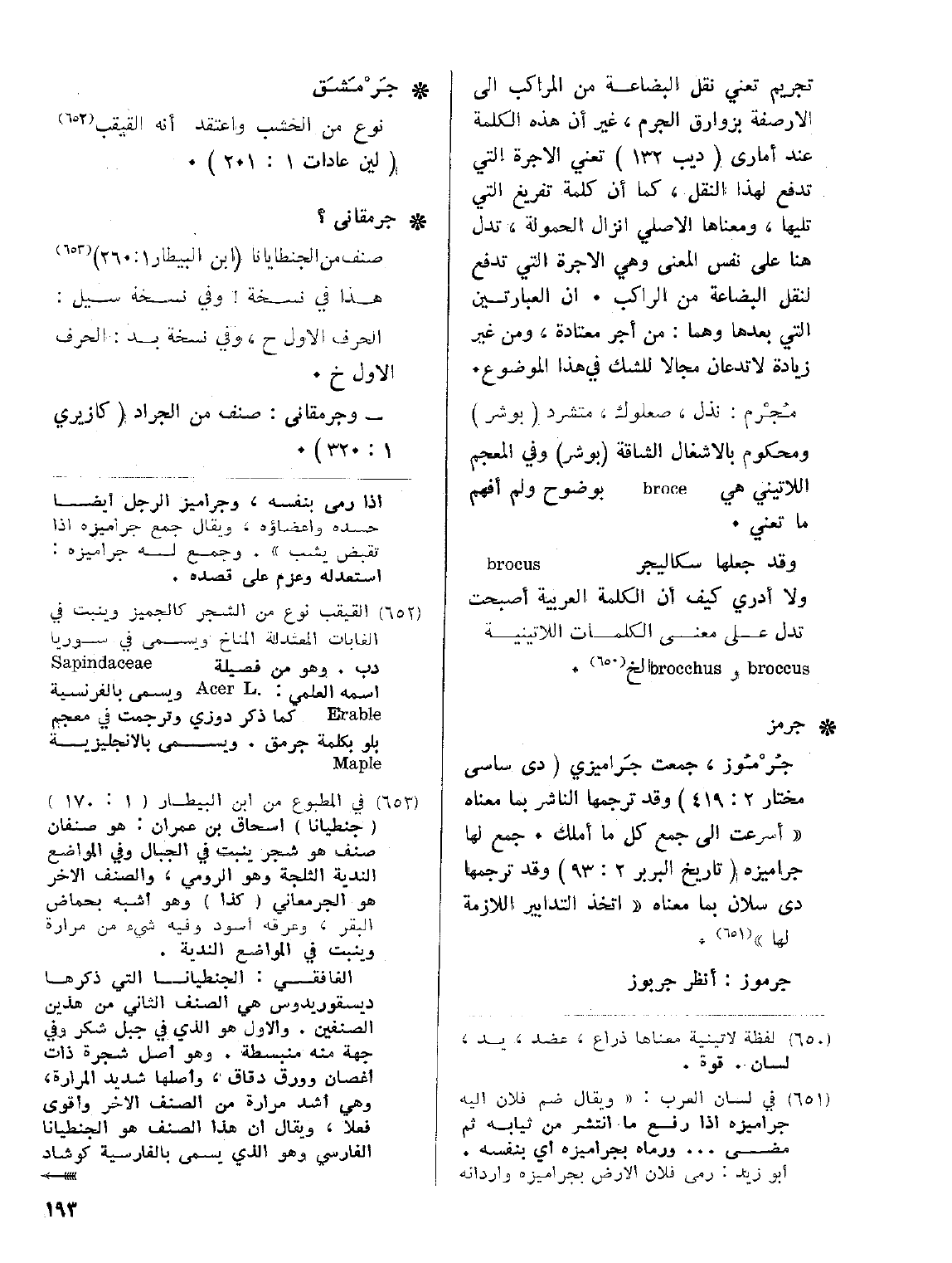 • جرمقاني؟: صنف من الجنطايانا (ابن البيطار 1: 260) هذا في نسخة! وفي نسخة سيا: الحرف الأول ح، وفي نسخة بد: الحرف الأول خ.