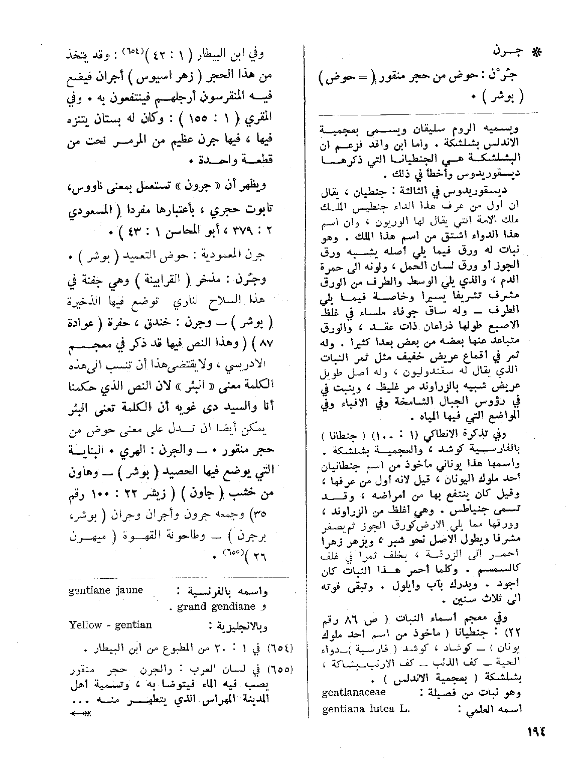 وفي ابن البيطار (1: 42): وقد يتخذ من هذا الحجر (زهر اسيوس) أجران فيضع فيه المنقرسون أرجلهم فينتفعون به. وفي المقري (1: 155): وكان له بستان يتنزه فيها، جرن عظيم من المرمر نحت من قطعة واحدة.