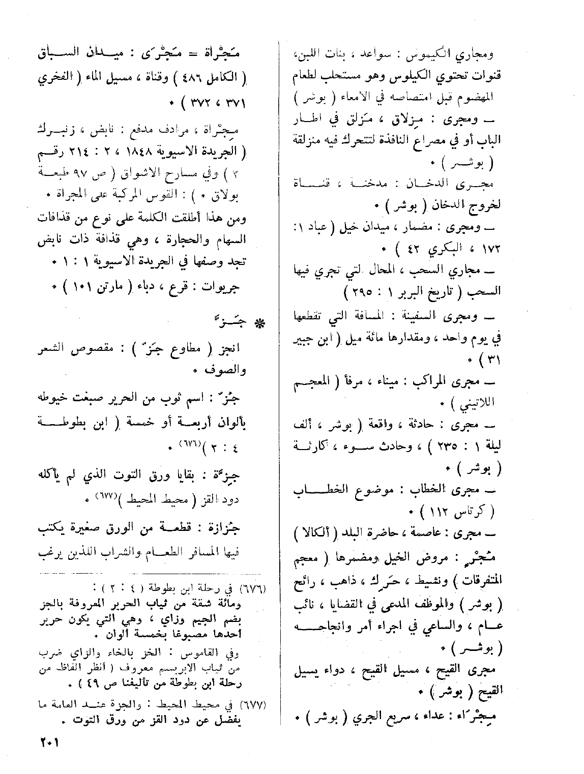 مَجْراة= مَجْرَى: ميدان السباق (الكامل 486) وقناة، مسيل الماء (الفخري 371، 372).