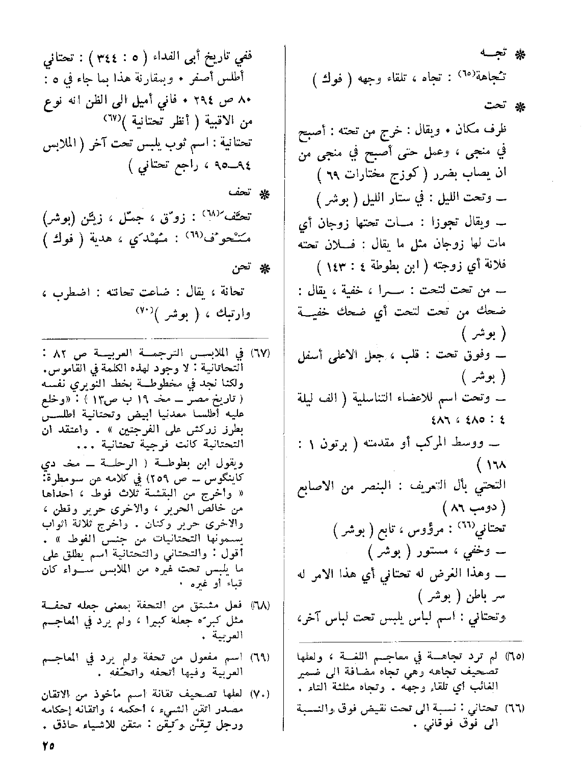 وتحتاني: اسم لباس يلبس تحت لباس آخر، ففي تاريخ أبي الفداء (5: 344): تحتاني أطلس أصفر. وبمقارنة هذا بما جاء في 5: 80ص 294. فإني أميل إلى الظن إنه نوع من الأقبية (أنظر تحتانية).