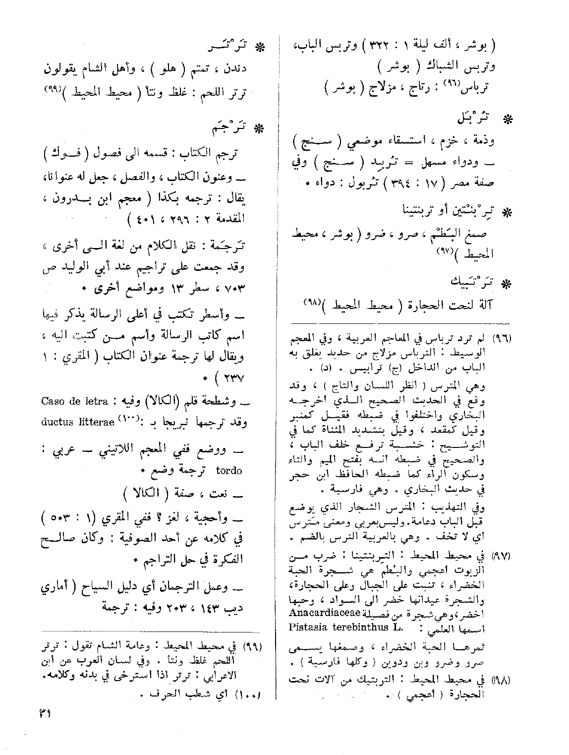 • تِرْبنْتين أو تربنتينا: صمغ البَطْم، صرو، (بوشر، محيط المحيط).