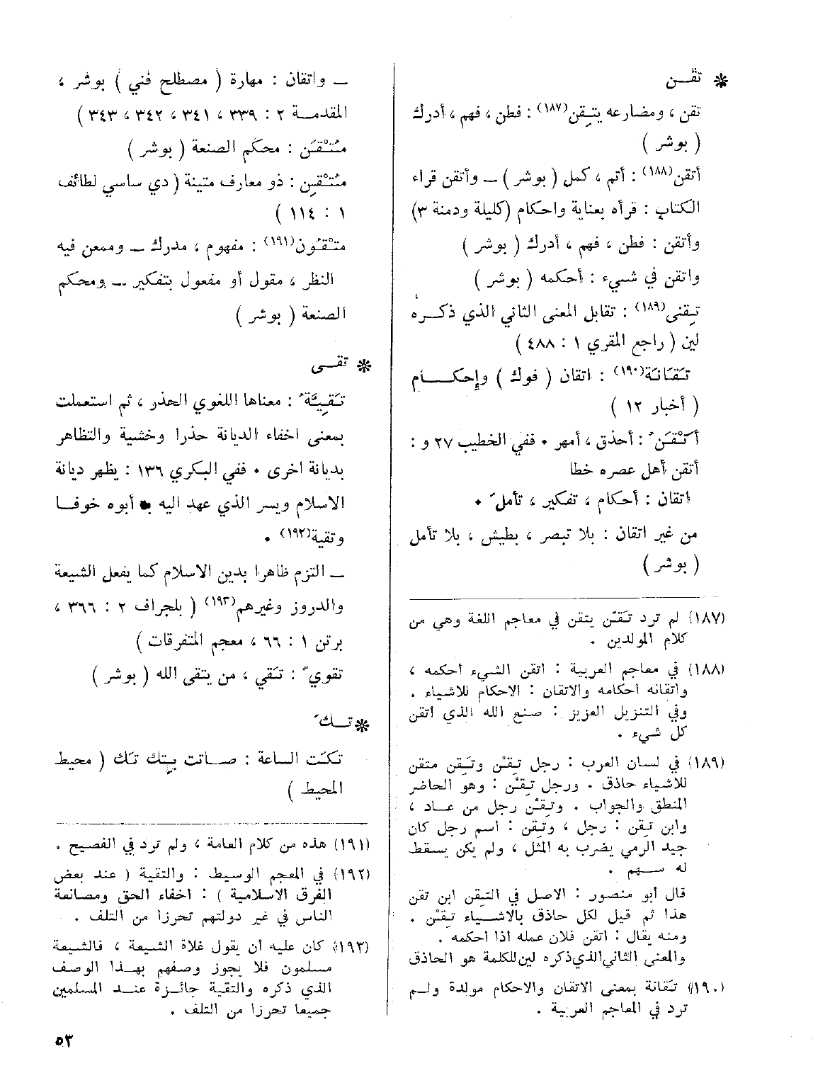 وإتقان: مهارة (مصطلح فني) بوشر، المقدمة 2: 339، 341، 342، 343) مُتْقَن: محكم الصنعة (بوشر).