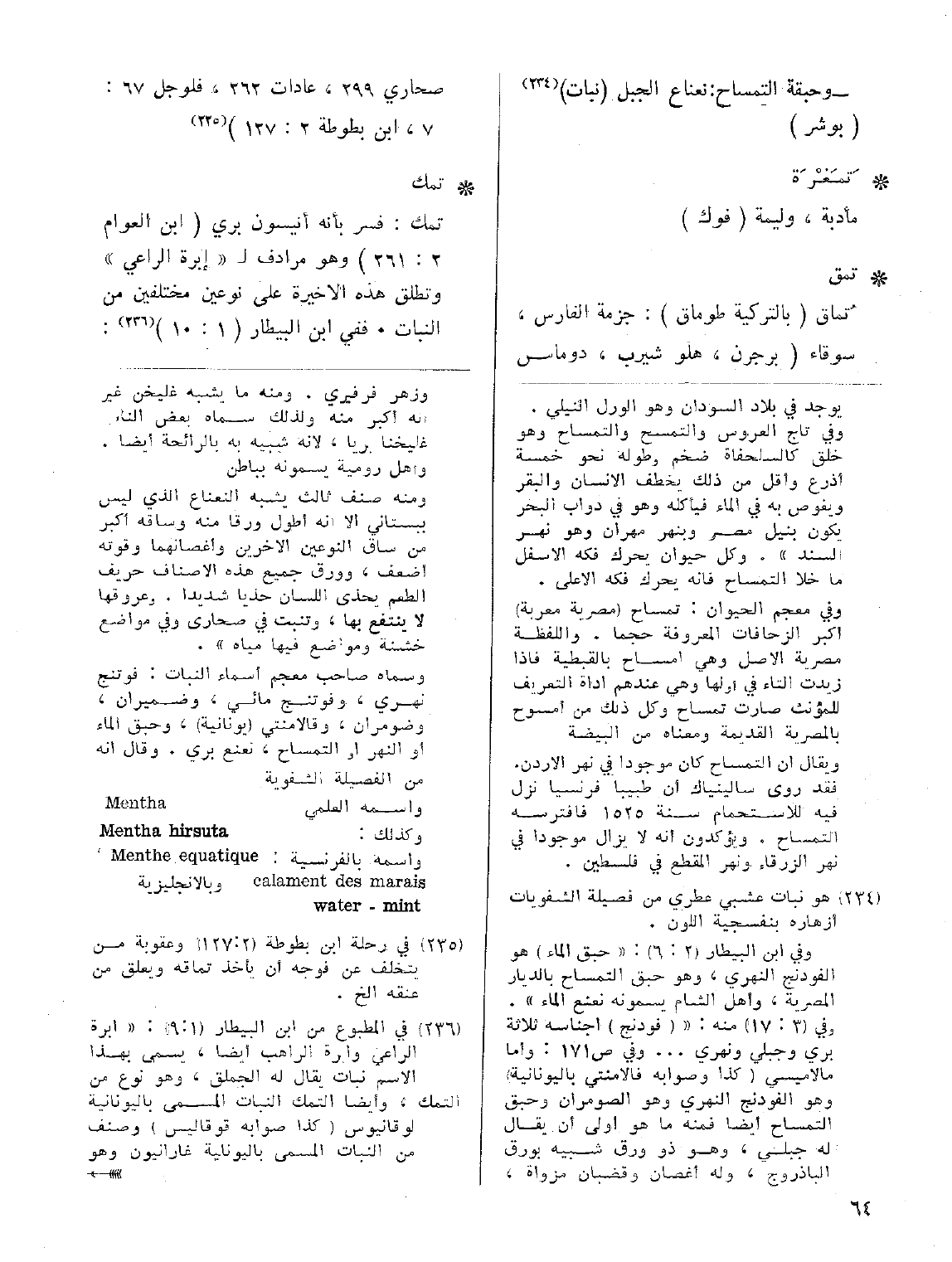 • تمك: تمك: فسر بأنه أنيسون بري (ابن العوام 2: 261) وهو مرادف ل (إبرة الراعي) وتطلق هذه الأخيرة على نوعين مختلفين من النبات. ففي ابن البيطار (1: 10):