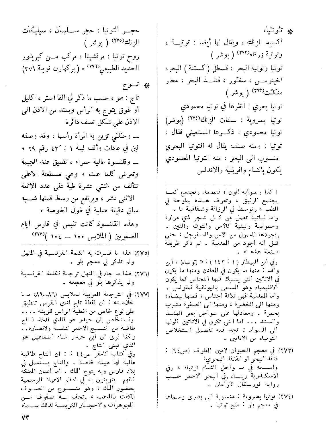 • تُوتْياء: أكسيد الزنك، ويقال لها أيضاً: توتية، وتوتية زرقاء (بوشر).
