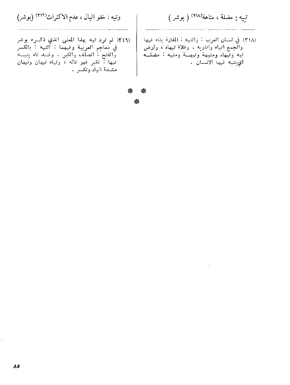 وتيه: خلو البال، عدم الاكتراث (بوشر).