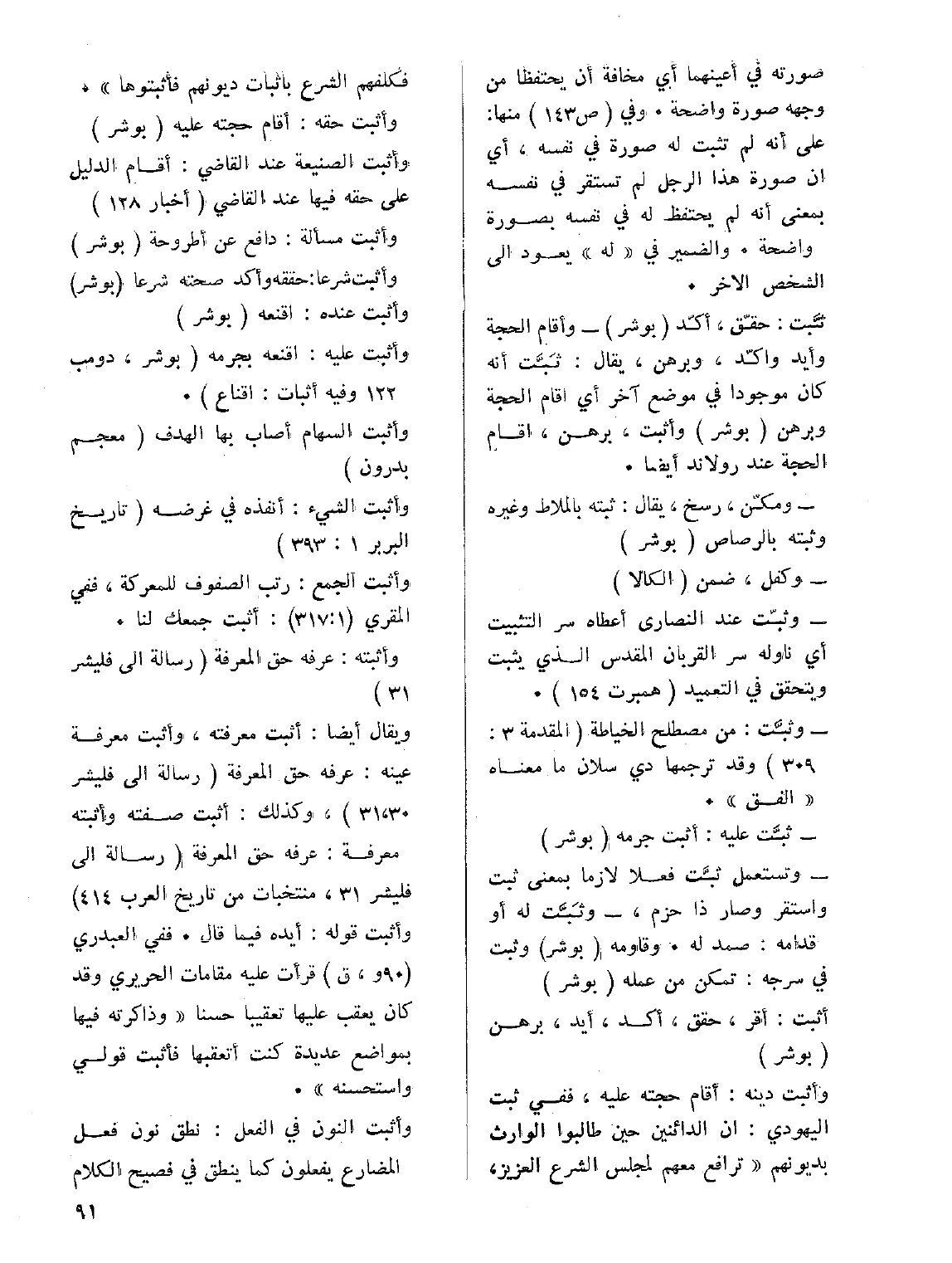 ويقال أيضاً: أثبت معرفته، وأثبت معرفة عينه: عرفه حق المعرفة (رسالة إلى فليشر 30، 31)، وكذلك: أثبت صفته وأثبته معرفة: عرفه حق المعرفة (رسالة إلى فليشر 31، منتخبات من تاريخ العرب 414)
