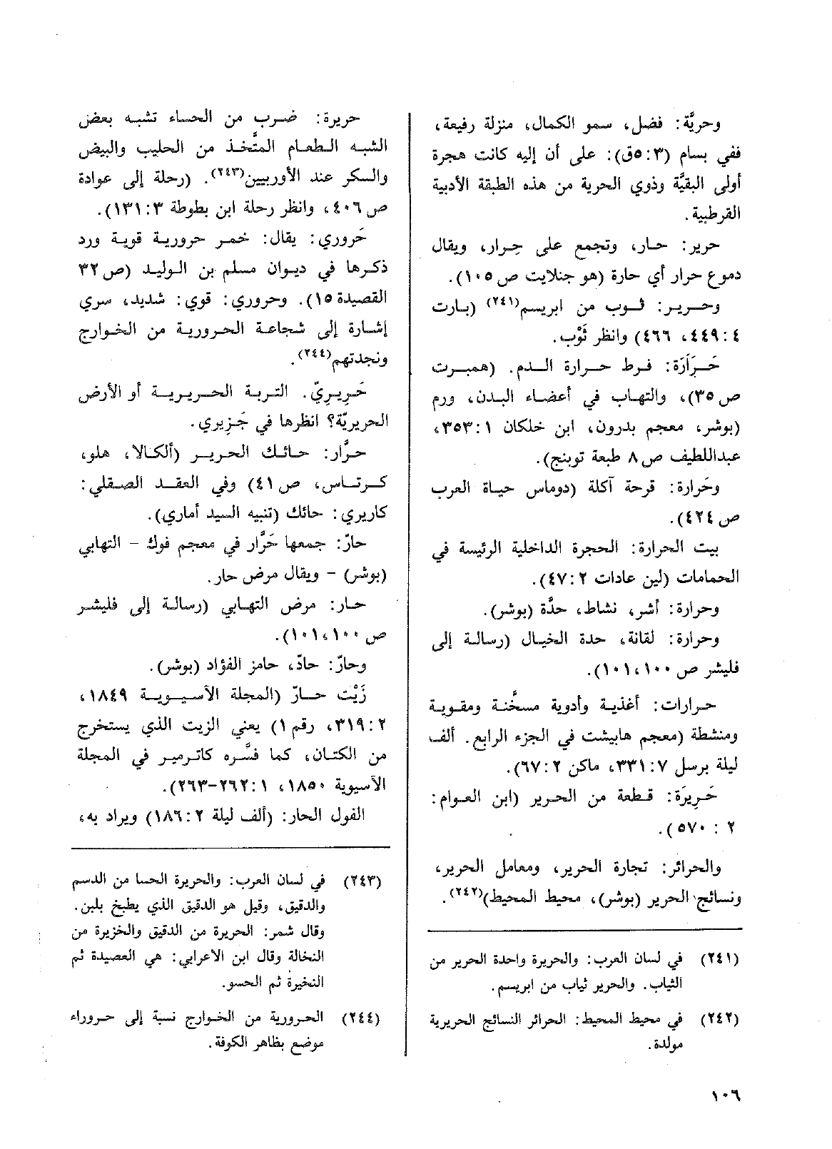 والحرائر: تجارة الحرير، ومعامل الحرير، ونسائج الحرير (بوشر)، (محيط المحيط).